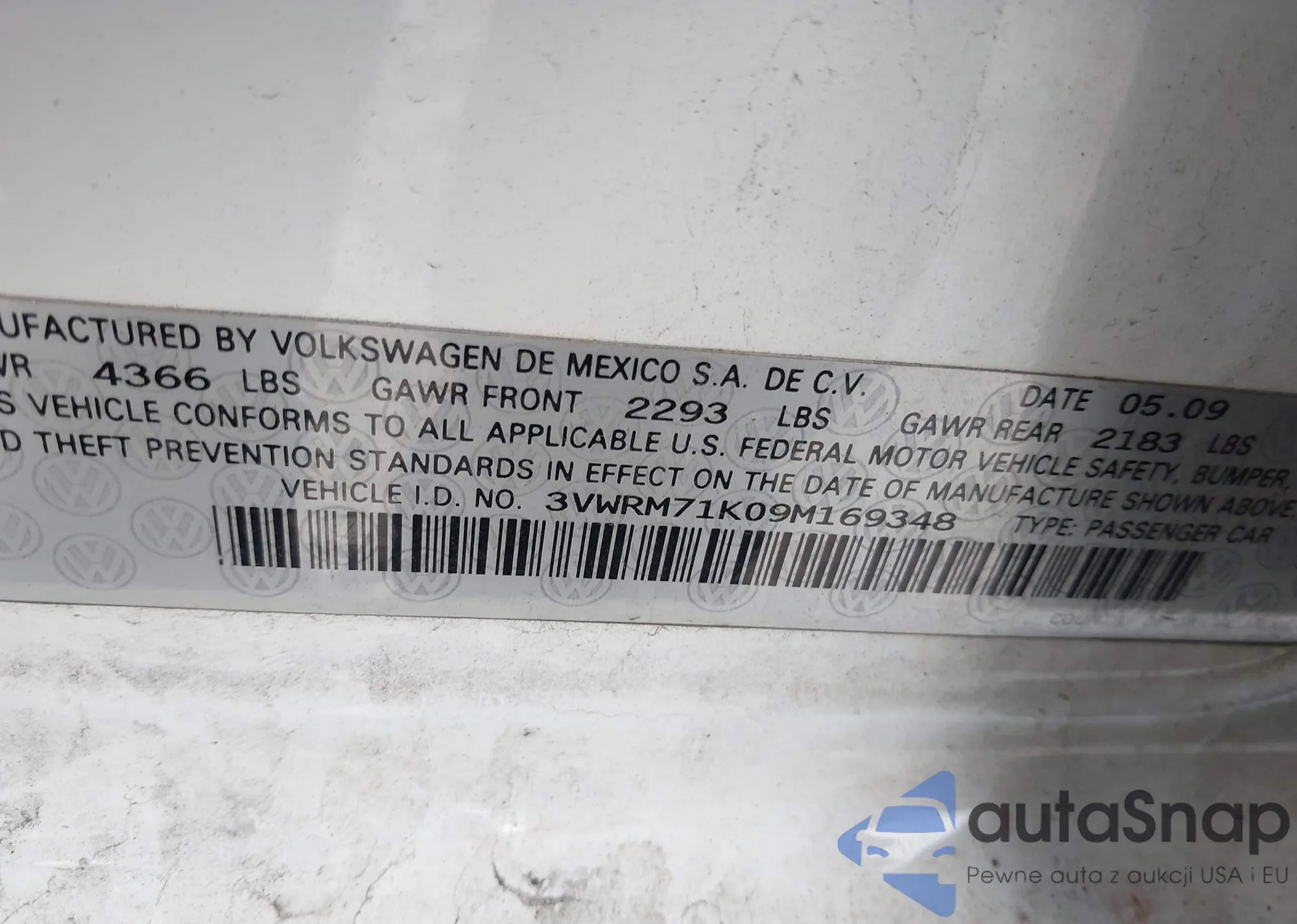 VIN: 3VWRM71K09M169348