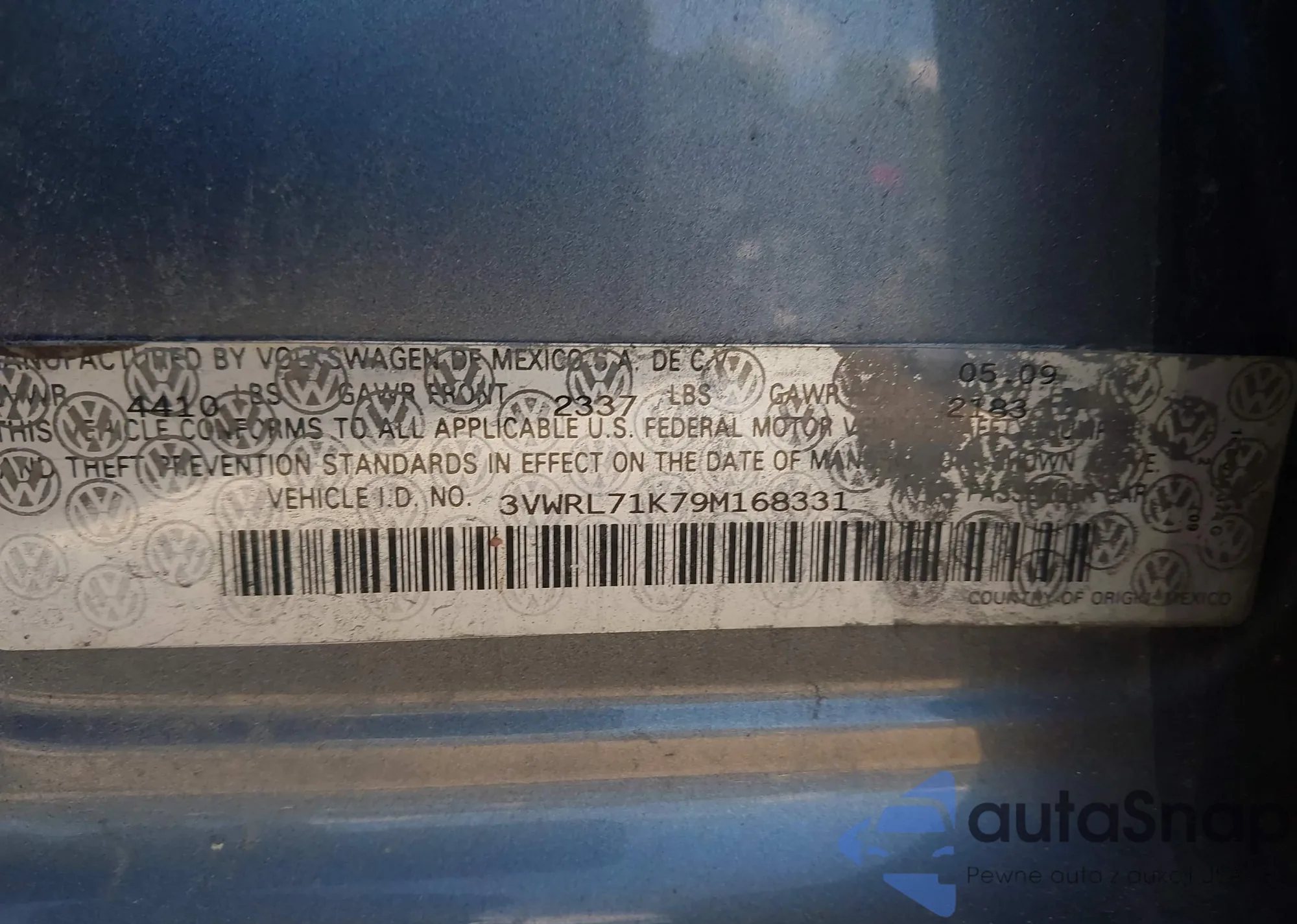 VIN: 3VWRL71K79M168331