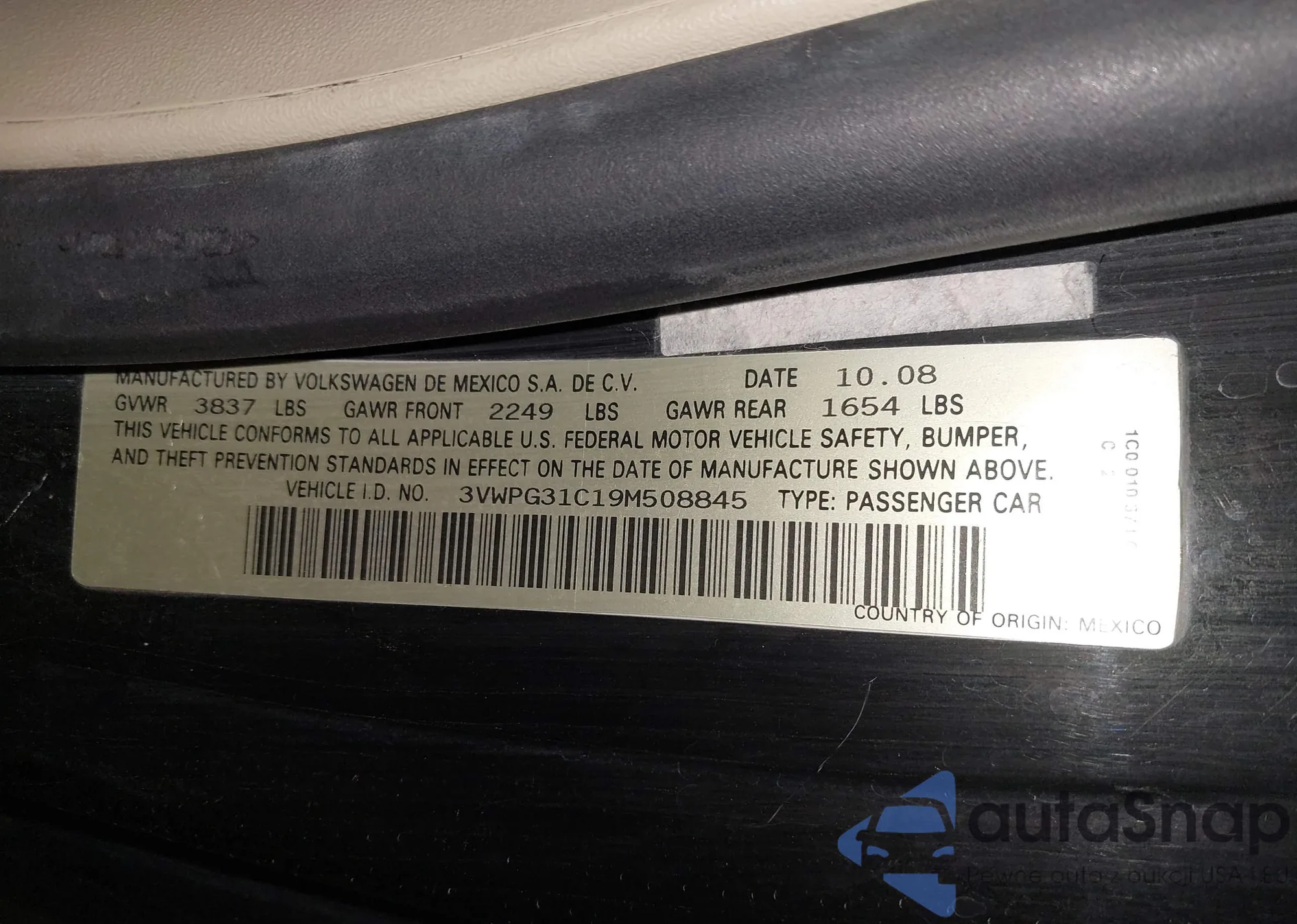 VIN: 3VWPG31C19M508845