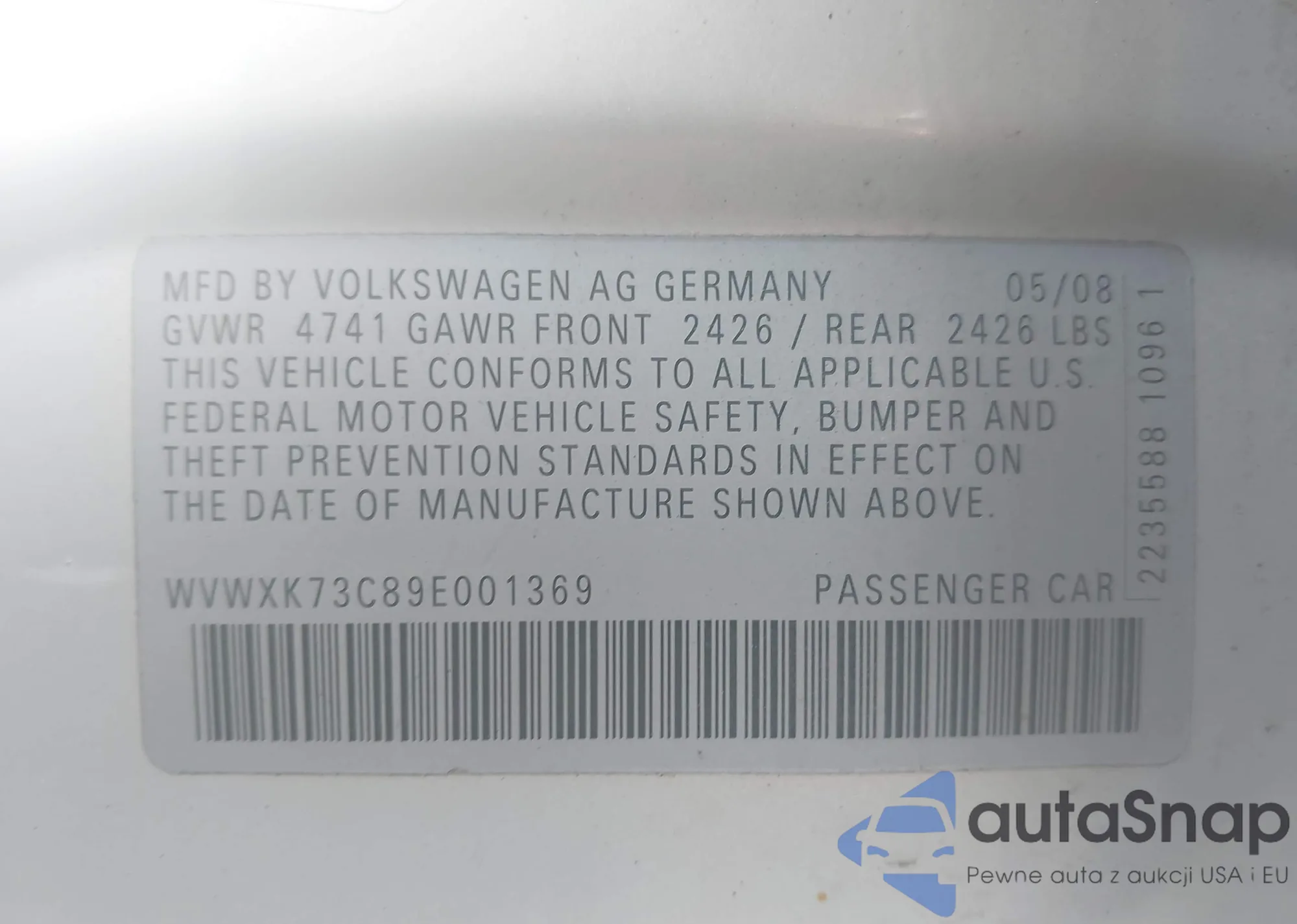 VIN: WVWXK73C89E001369