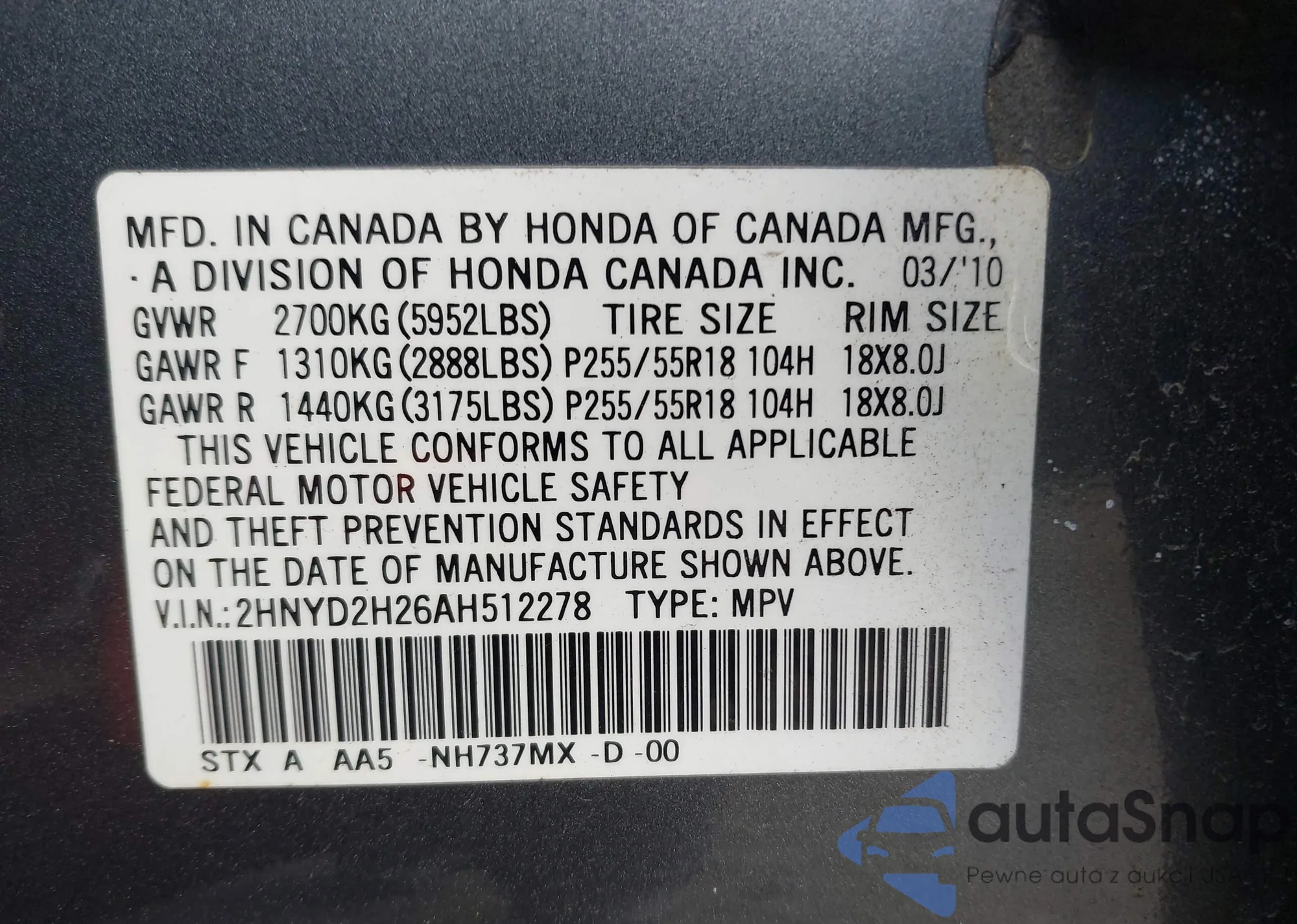 VIN: 2HNYD2H26AH512278