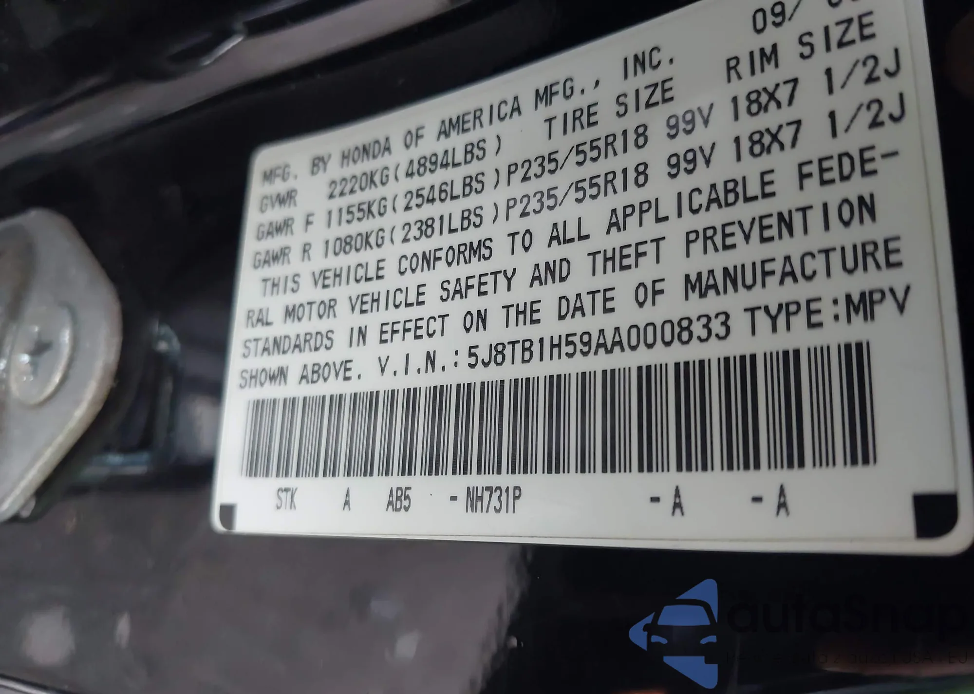 VIN: 5J8TB1H59AA000833