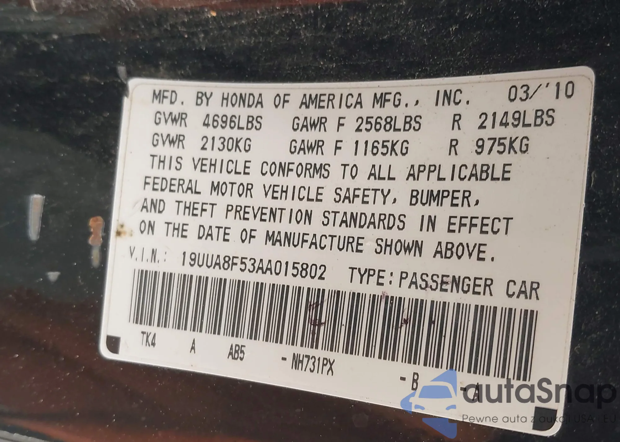VIN: 19UUA8F53AA015802