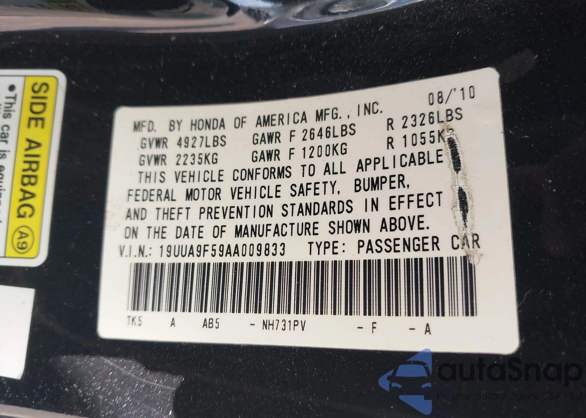 VIN: 19UUA9F59AA009833