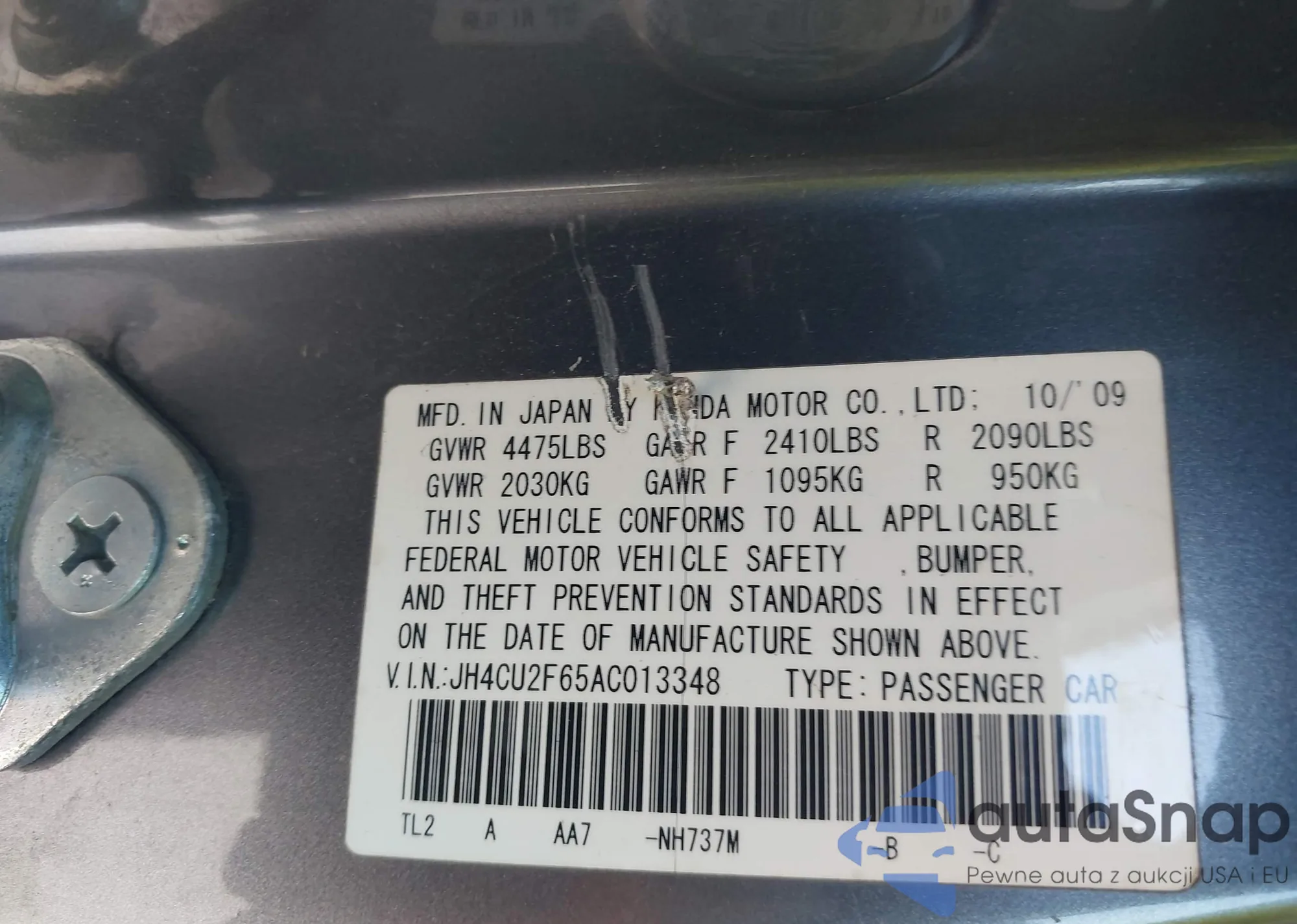 • VIN: JH4CU2F65AC013348