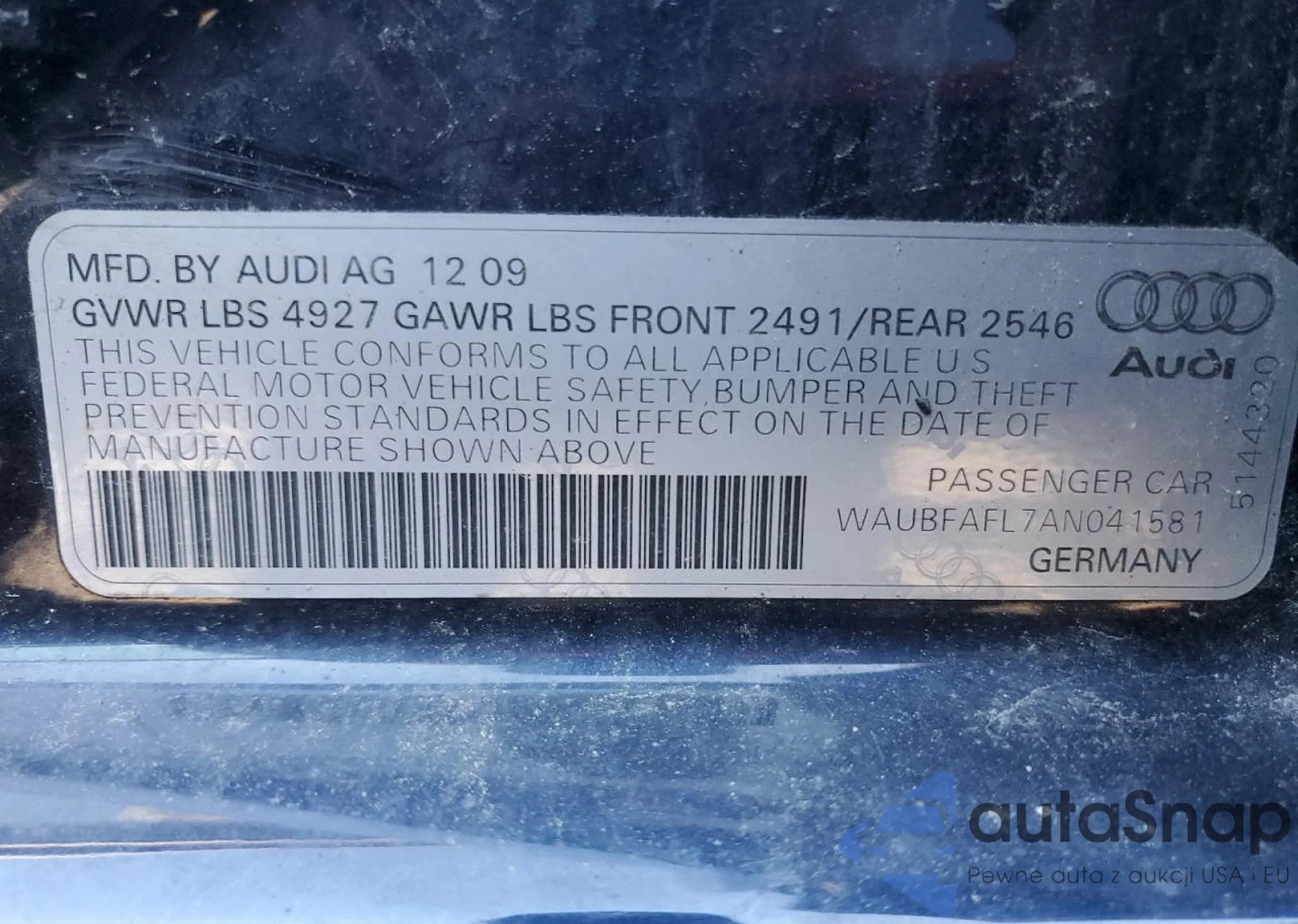 VIN: WAUBFAFL7AN041581