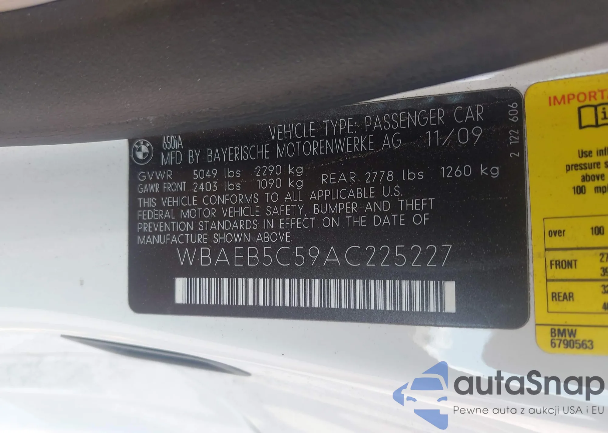 VIN: WBAEB5C59AC225227