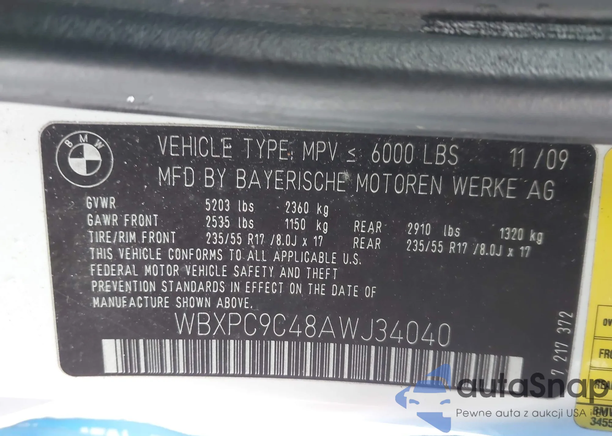 • VIN: WBXPC9C48AWJ34040
