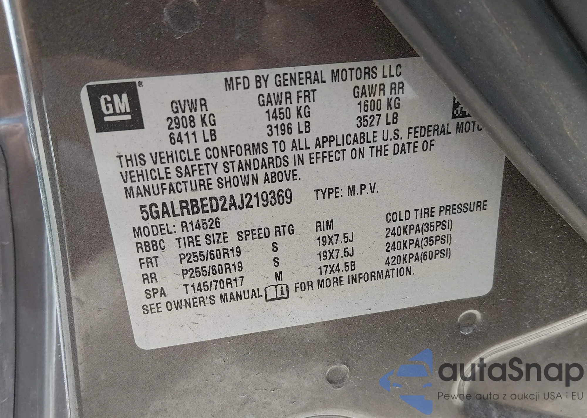 The car Buick Enclave 2010 (VIN 5GALRBED2AJ219369) has not been auctioned before. The documents are clean, and the mileage matches or is below the market average. Sold by an insurance company – we recommend purchase. Delivery to the port will take approx. 6–8 weeks.
