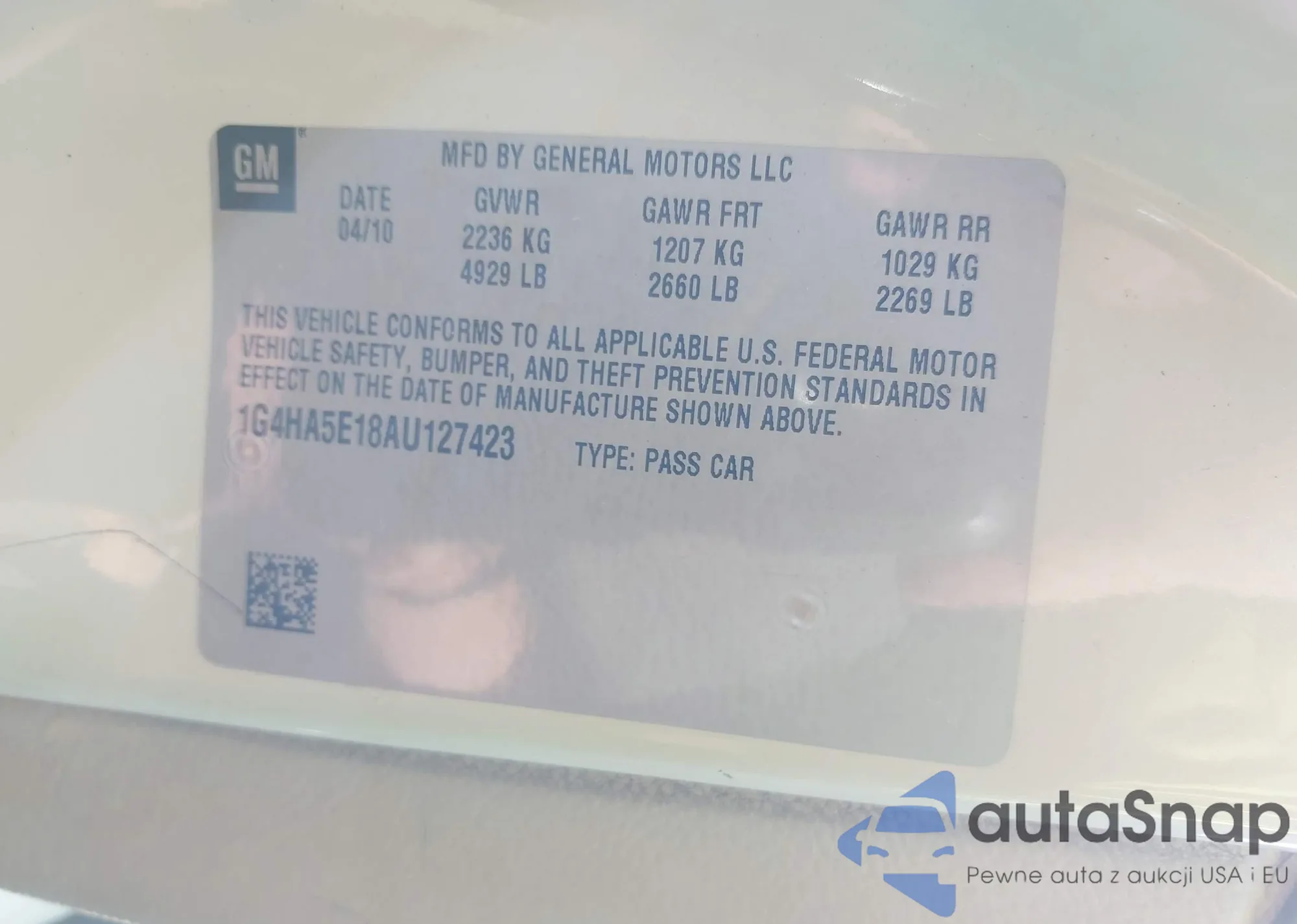 VIN: 1G4HA5E18AU127423