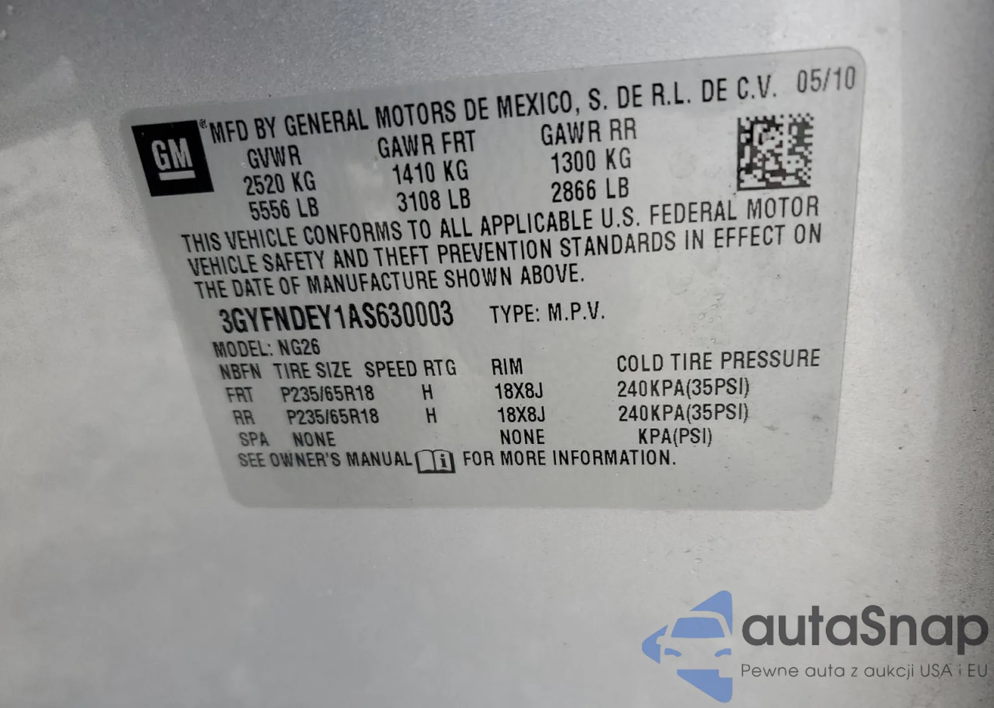 VIN: 3GYFNDEY1AS630003