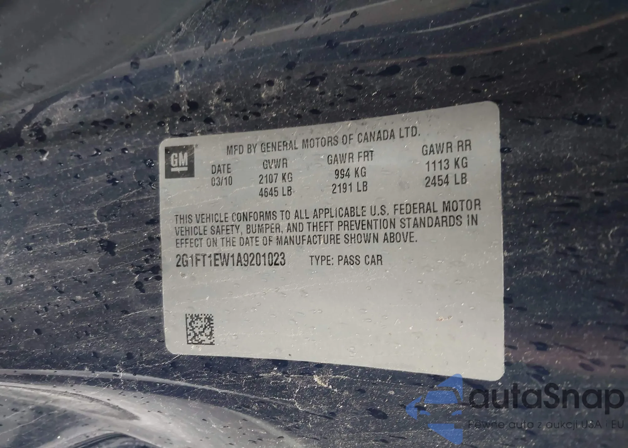 The car Chevrolet Camaro 2010 (VIN 2G1FT1EW1A9201023) has not been auctioned before. The documents are clean, and the mileage matches or is below the market average. Sold by an insurance company – we recommend purchase. Delivery to the port will take approx. 6–8 weeks.