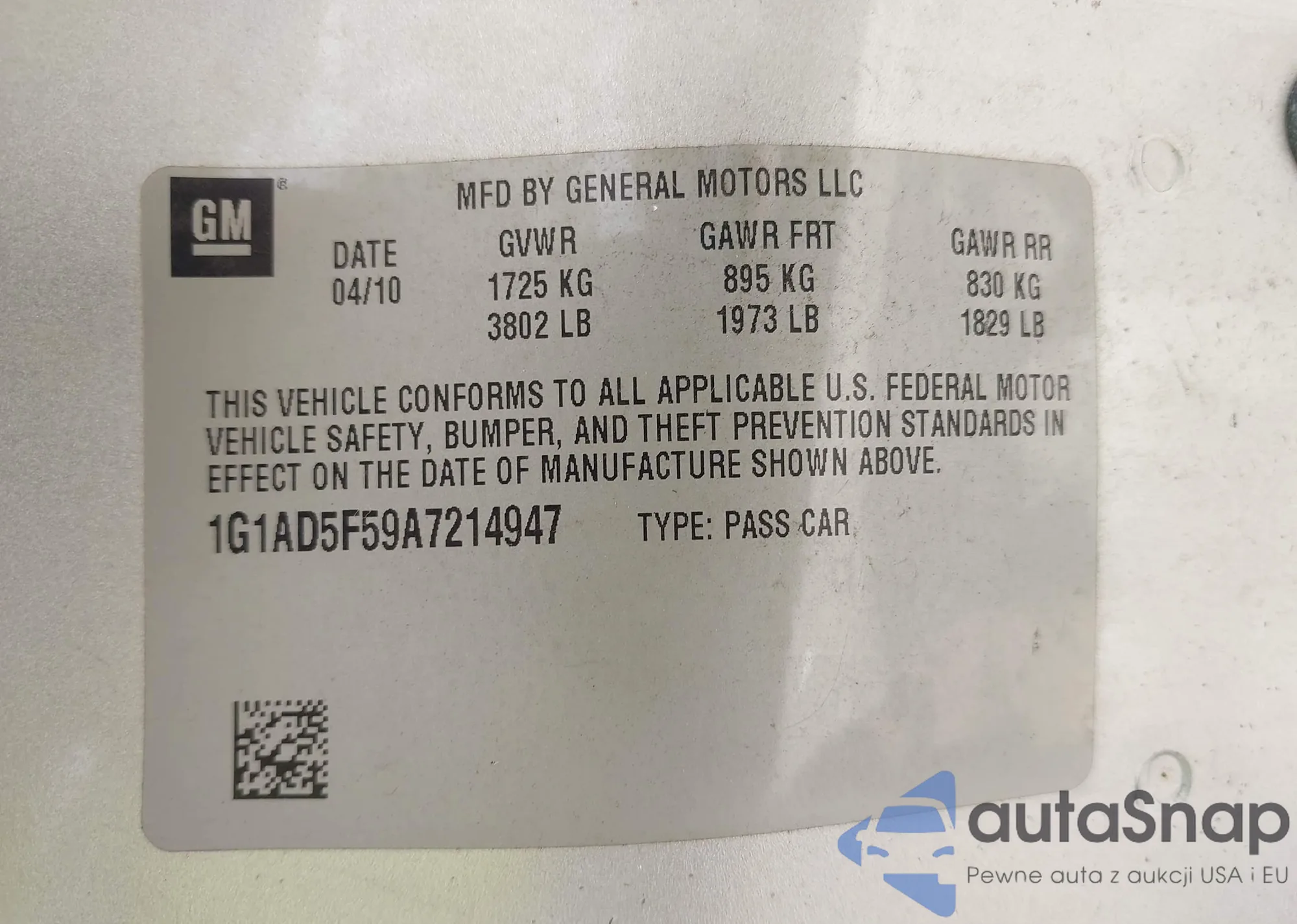 VIN: 1G1AD5F59A7214947
