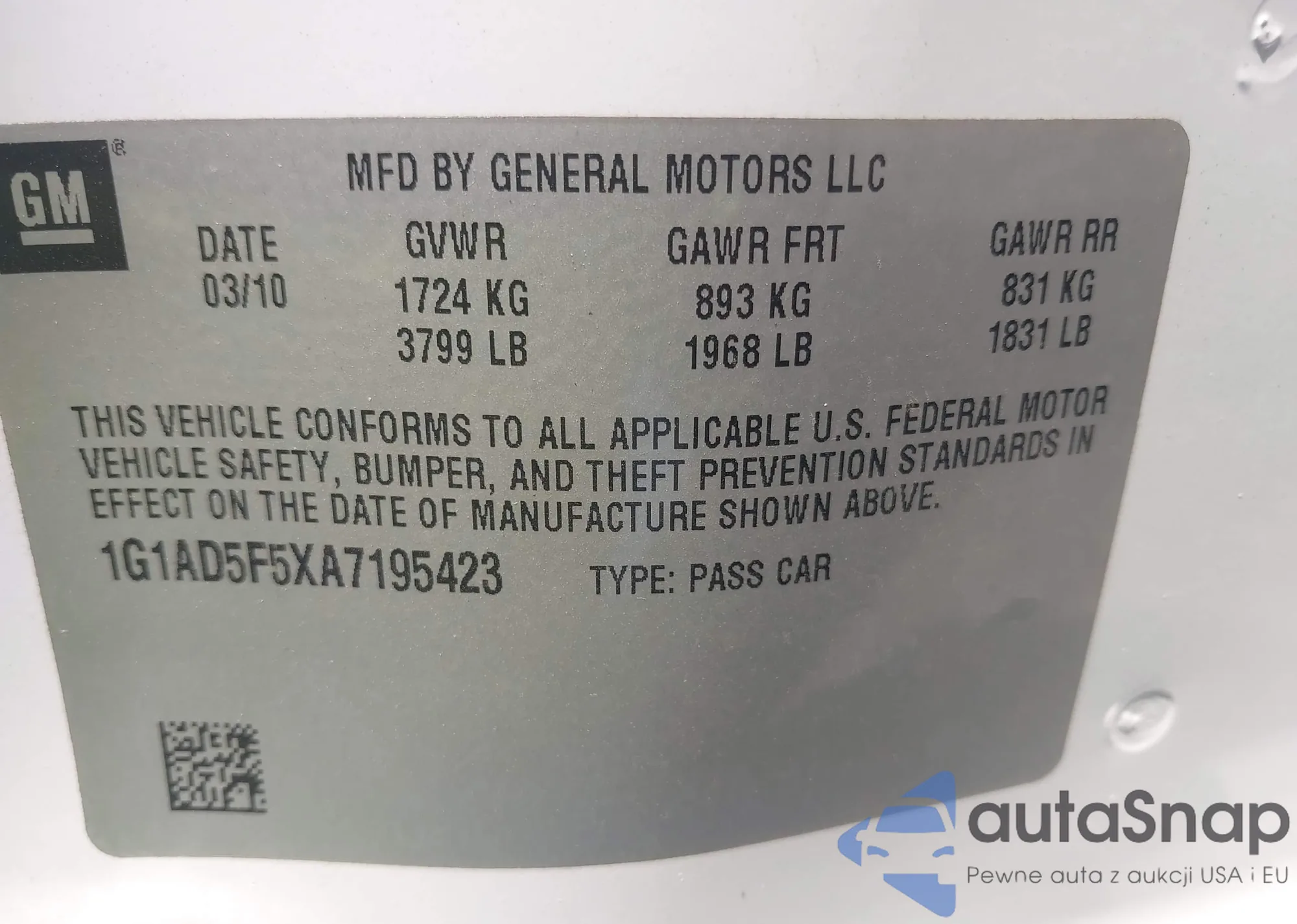 VIN: 1G1AD5F5XA7195423