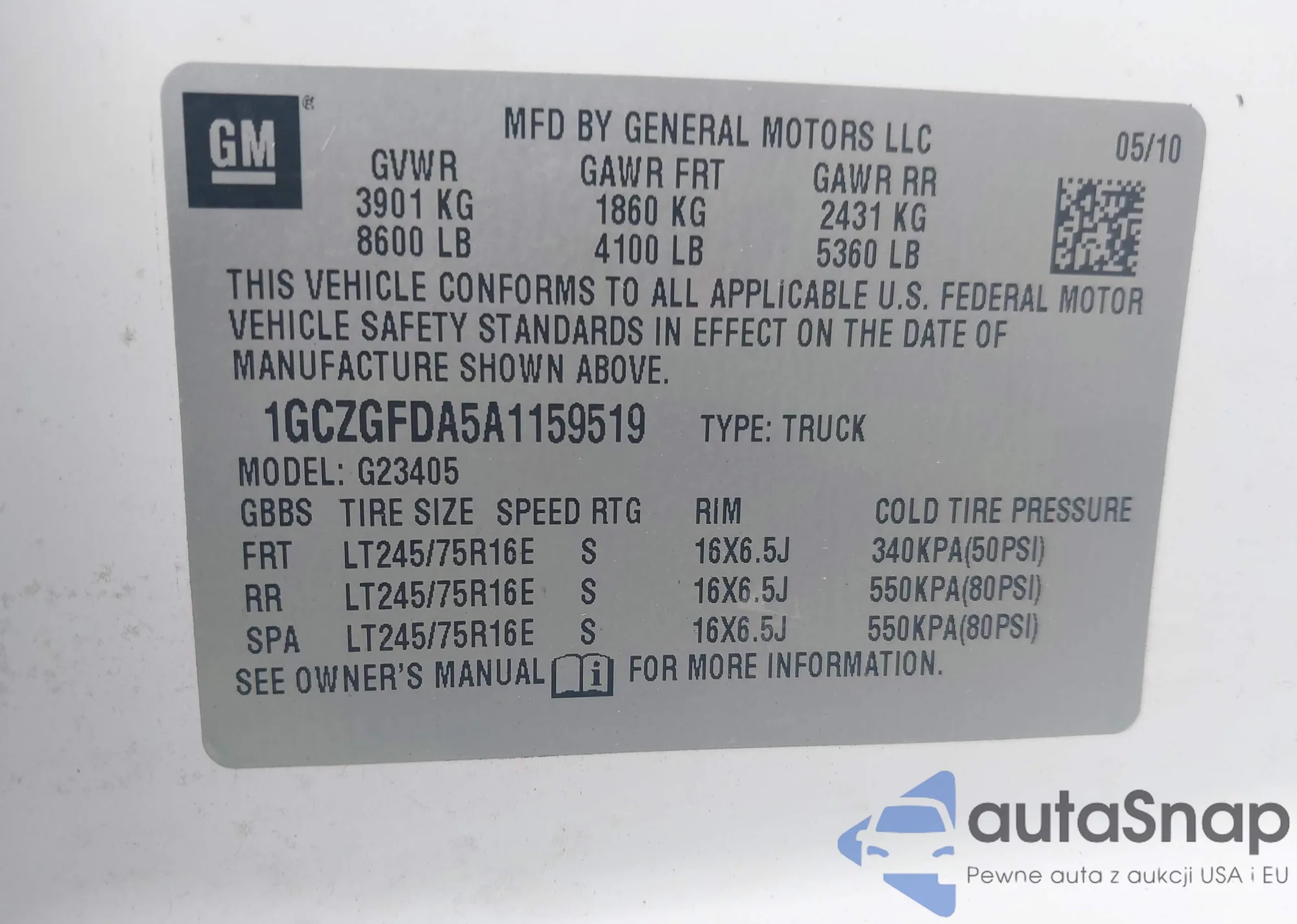 VIN: 1GCZGFDA5A1159519