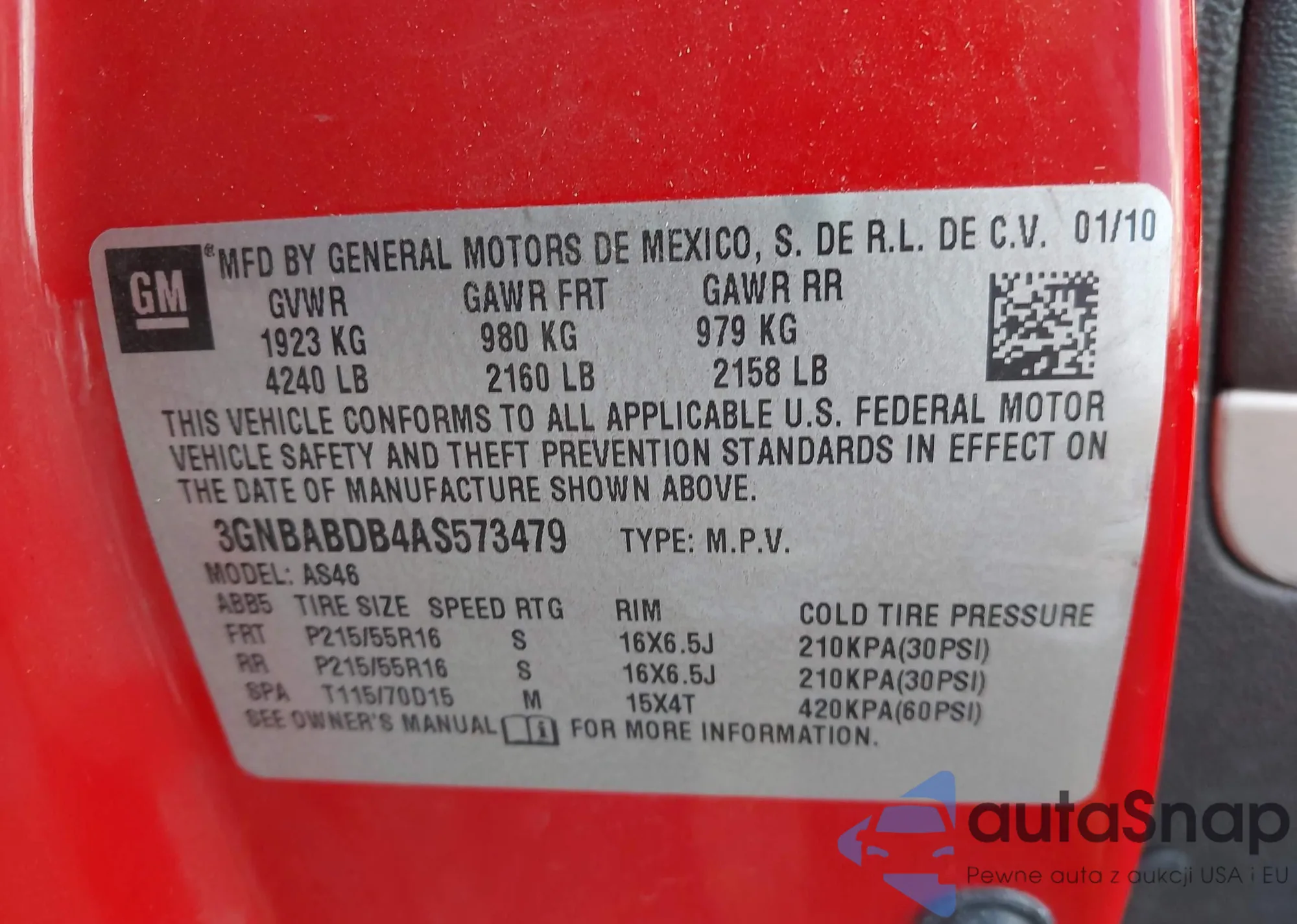 The car Chevrolet HHR 2010 (VIN 3GNBABDB4AS573479) has not been auctioned before. The documents are clean, and the mileage matches or is below the market average. Sold by an insurance company – we recommend purchase. Delivery to the port will take approx. 6–8 weeks.