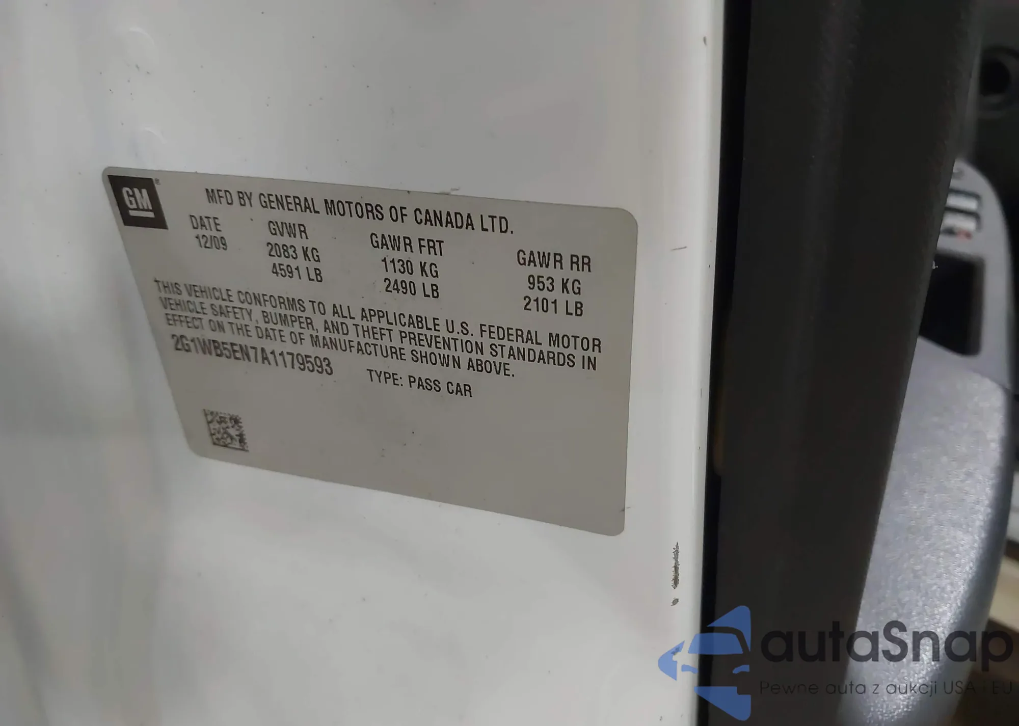 • VIN: 2G1WB5EN7A1179593