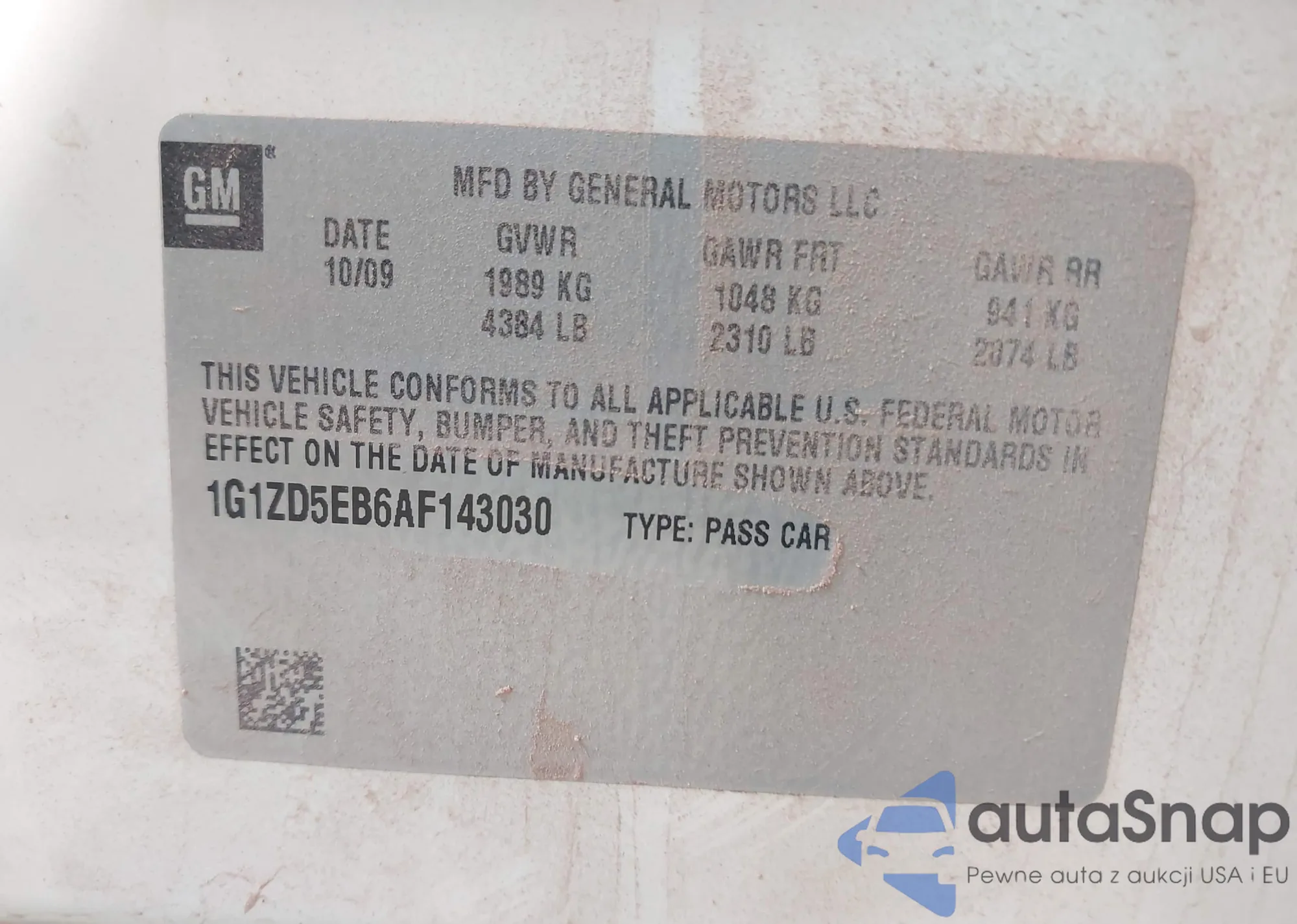 VIN: 1G1ZD5EB6AF143030