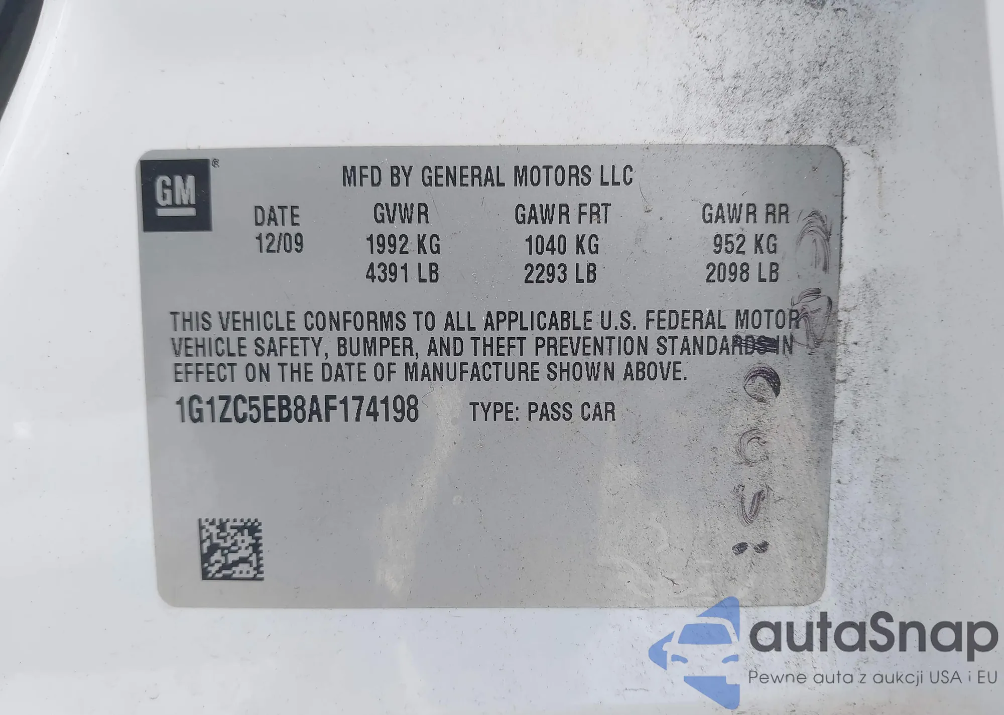 • VIN: 1G1ZC5EB8AF174198