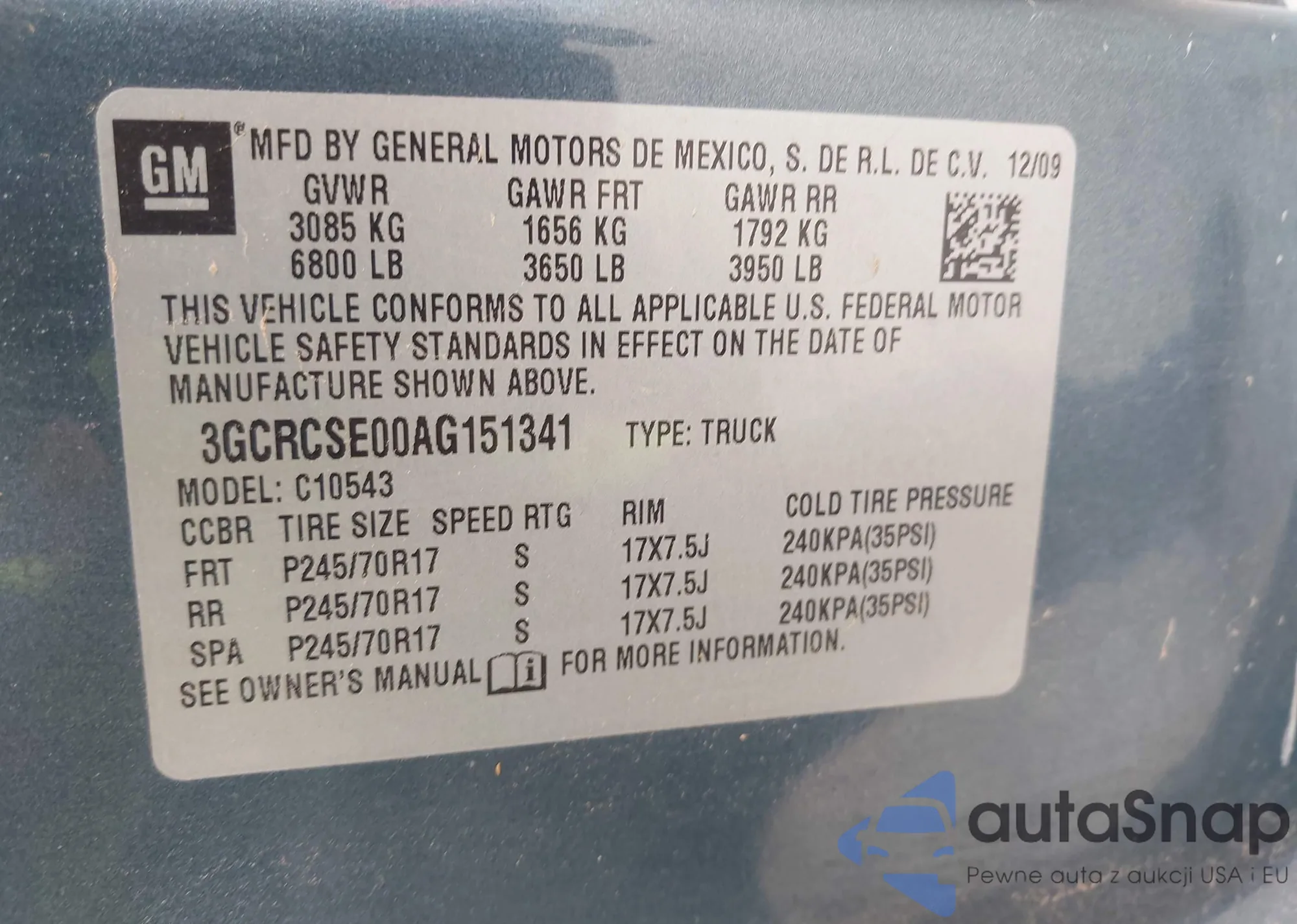 VIN: 3GCRCSE00AG151341