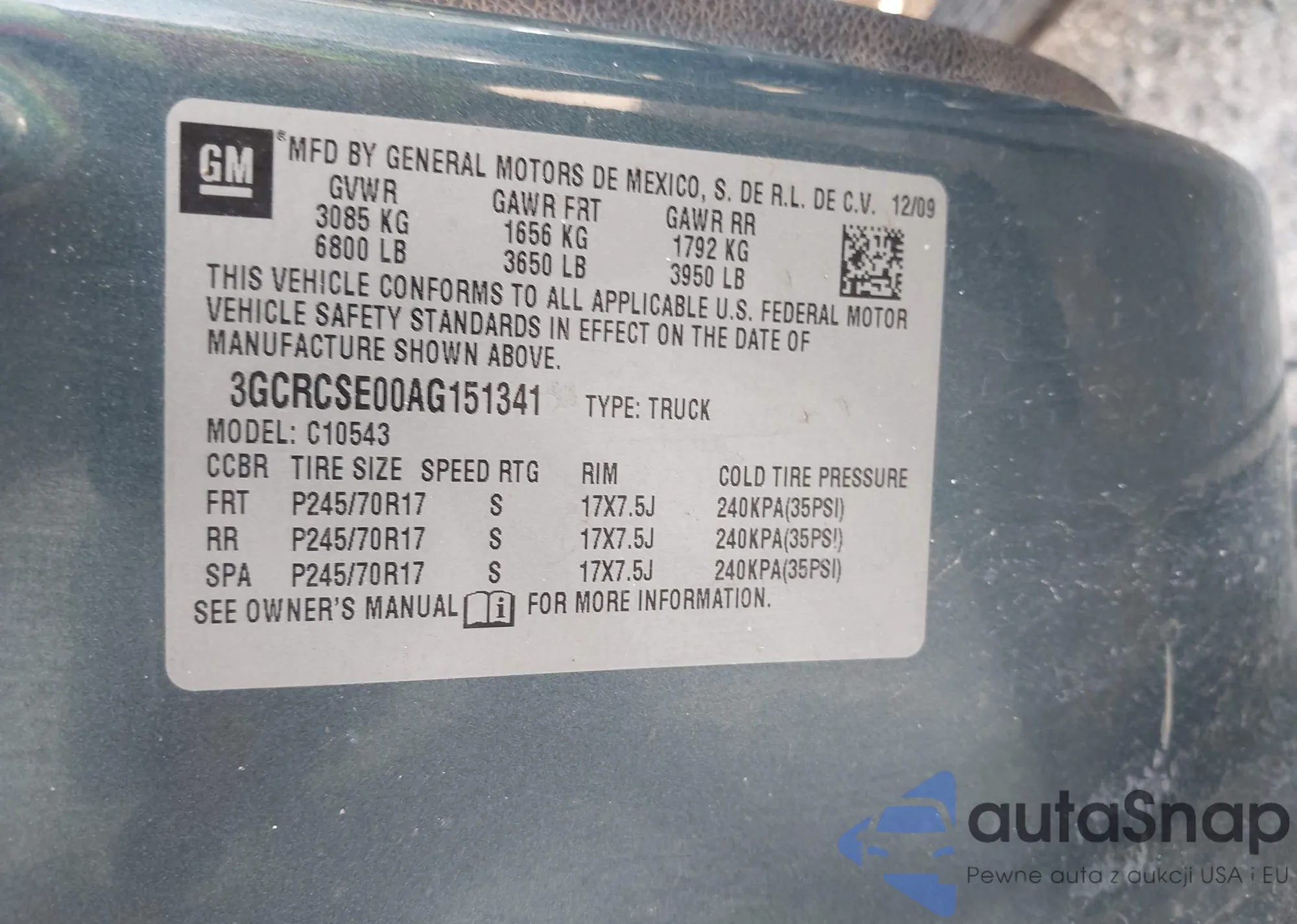 • VIN: 3GCRCSE00AG151341