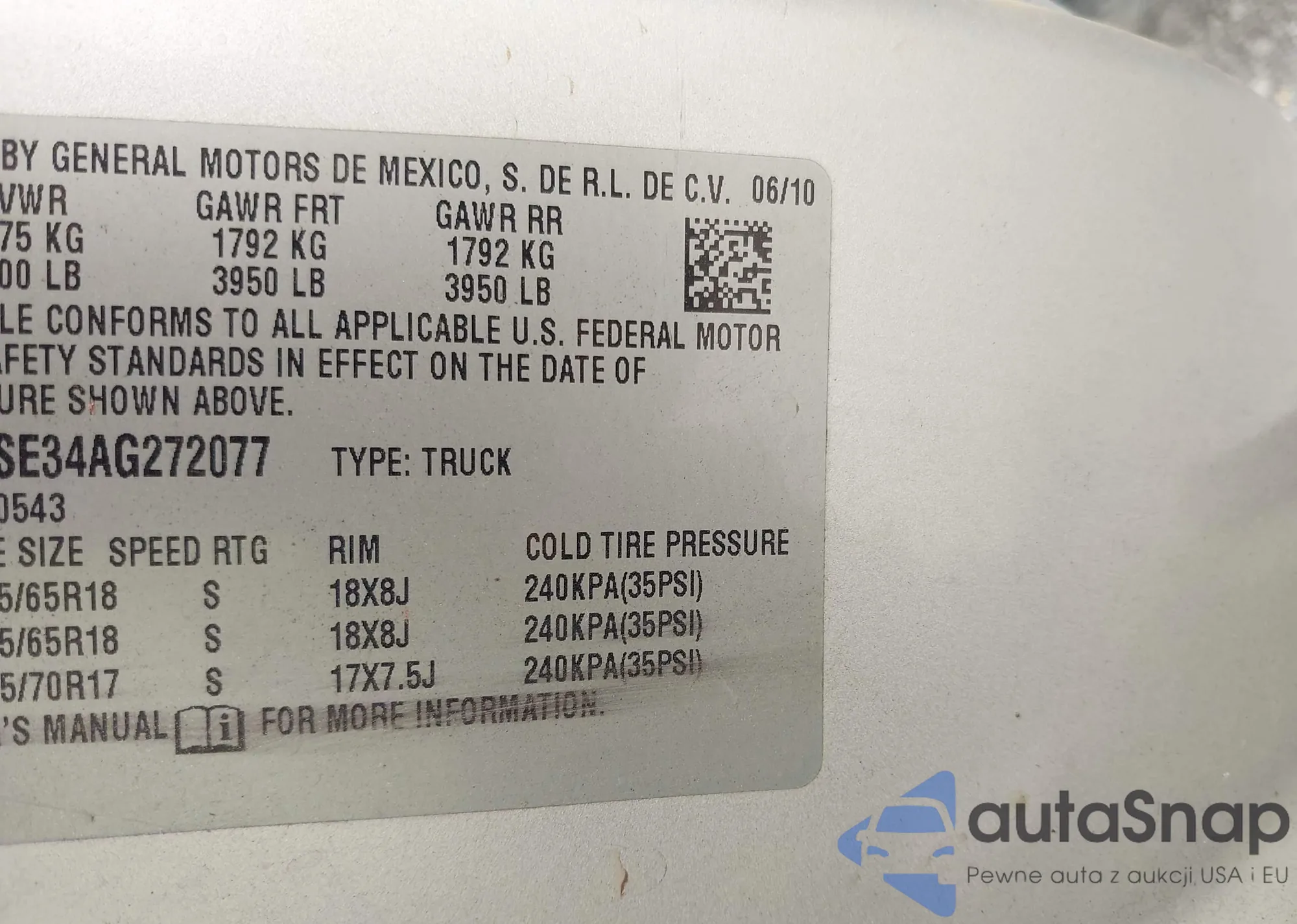 • VIN: 3GCRKSE34AG272077