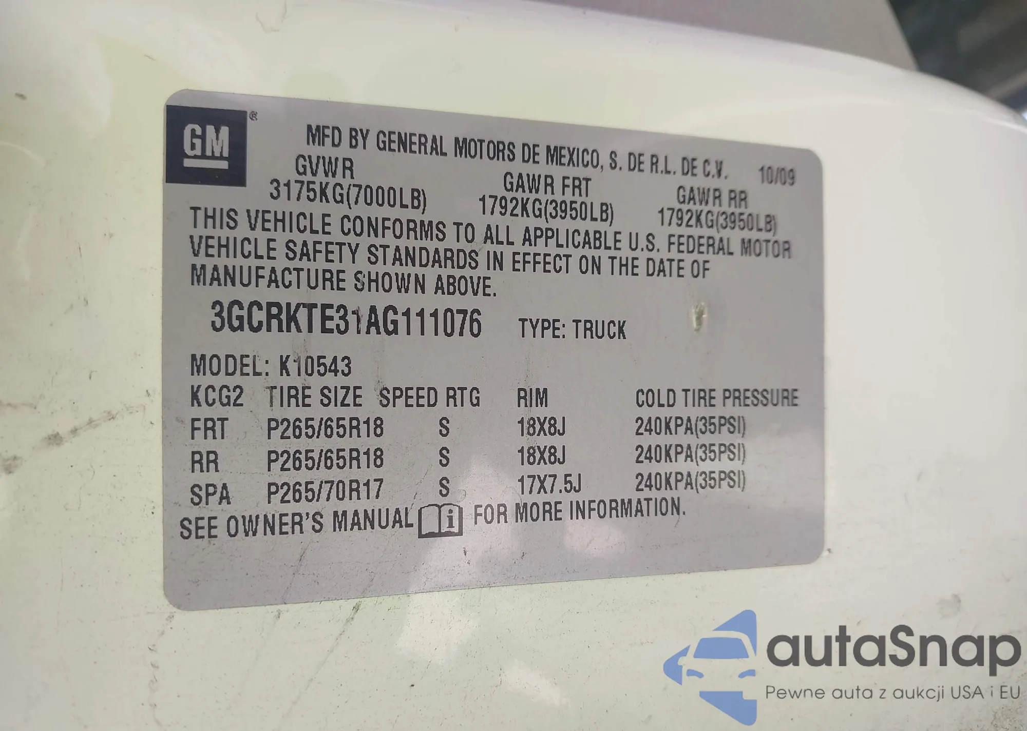 VIN: 3GCRKTE31AG111076