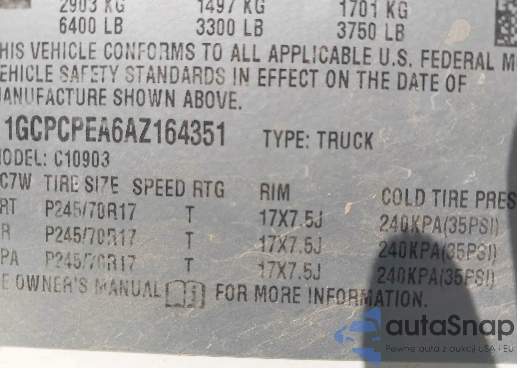 VIN: 1GCPCPEA6AZ164351