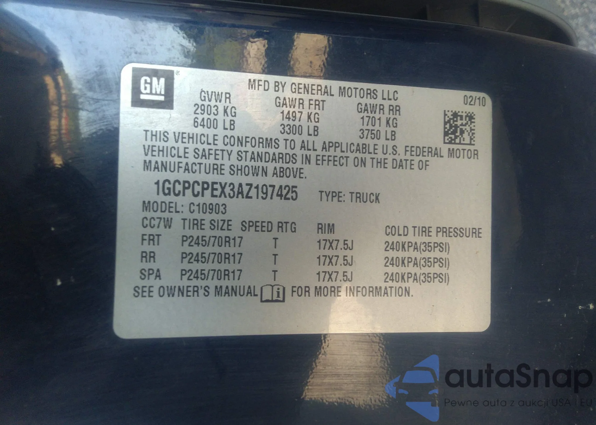 VIN: 1GCPCPEX3AZ197425