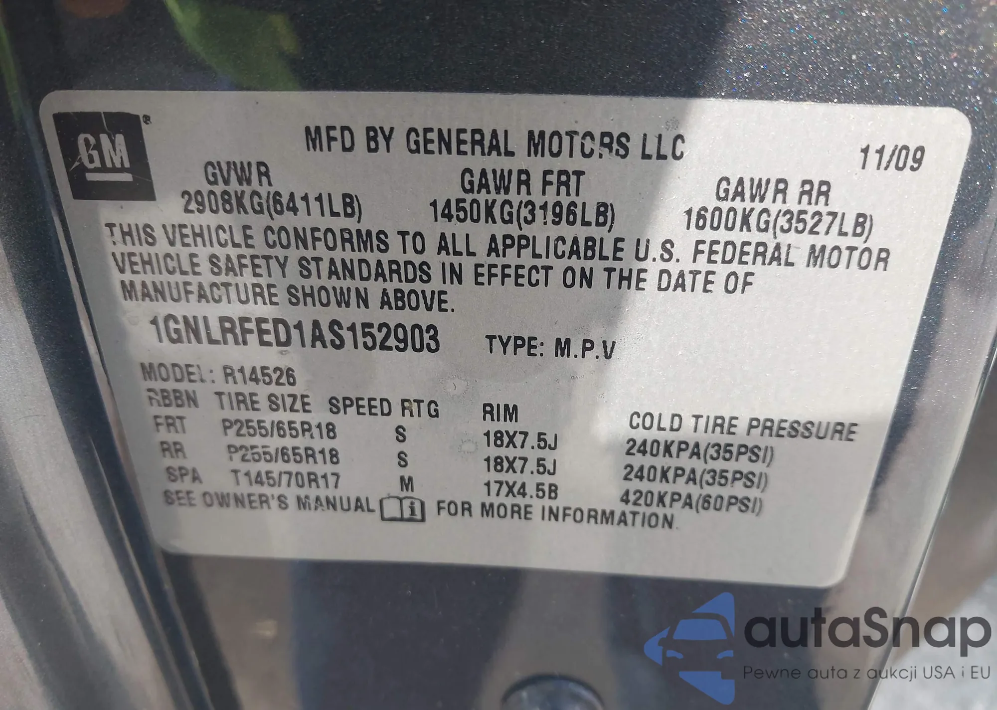 The car Chevrolet Traverse 2010 (VIN 1GNLRFED1AS152903) is sold by an unverified seller. We recommend checking the Carfax report and confirming registration possibilities before purchase.