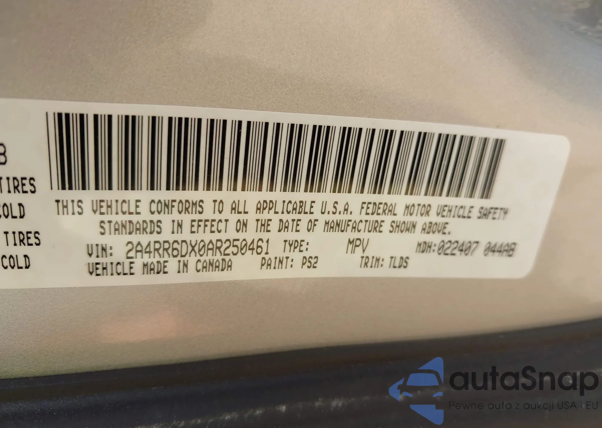 VIN: 2A4RR6DX0AR250461