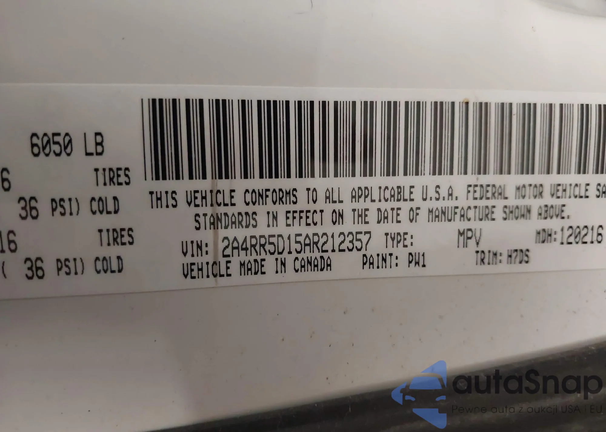 The car Chrysler Town & Country 2010 (VIN 2A4RR5D15AR212357) is sold by an unverified seller. We recommend checking the Carfax report and confirming registration possibilities before purchase.