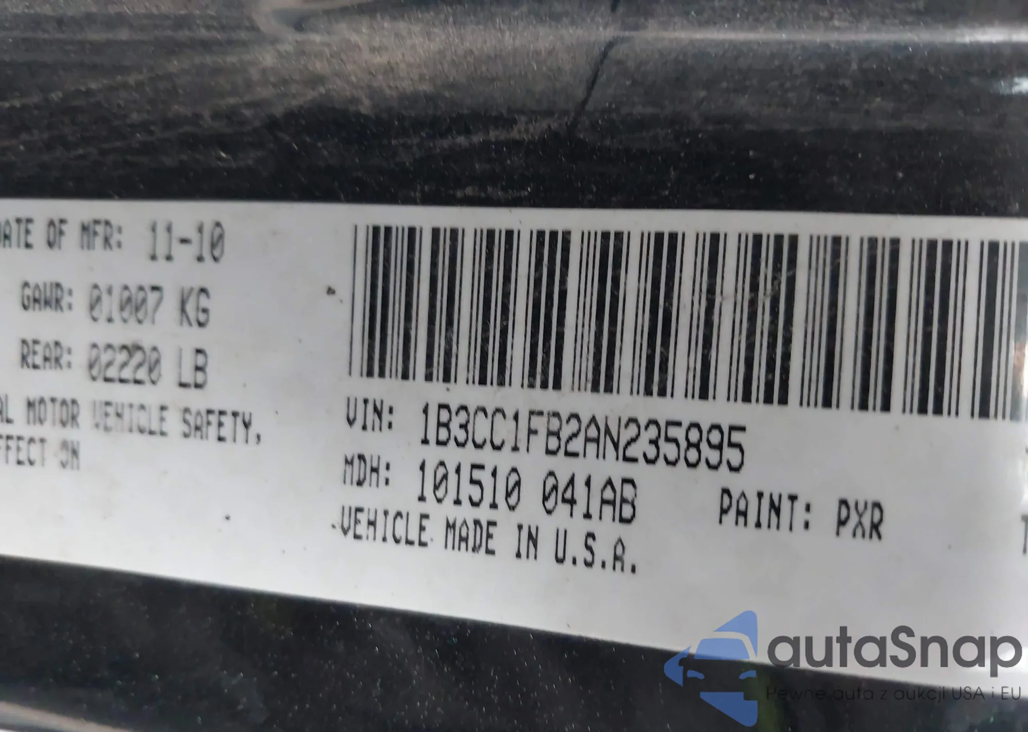 • VIN: 1B3CC1FB2AN235895