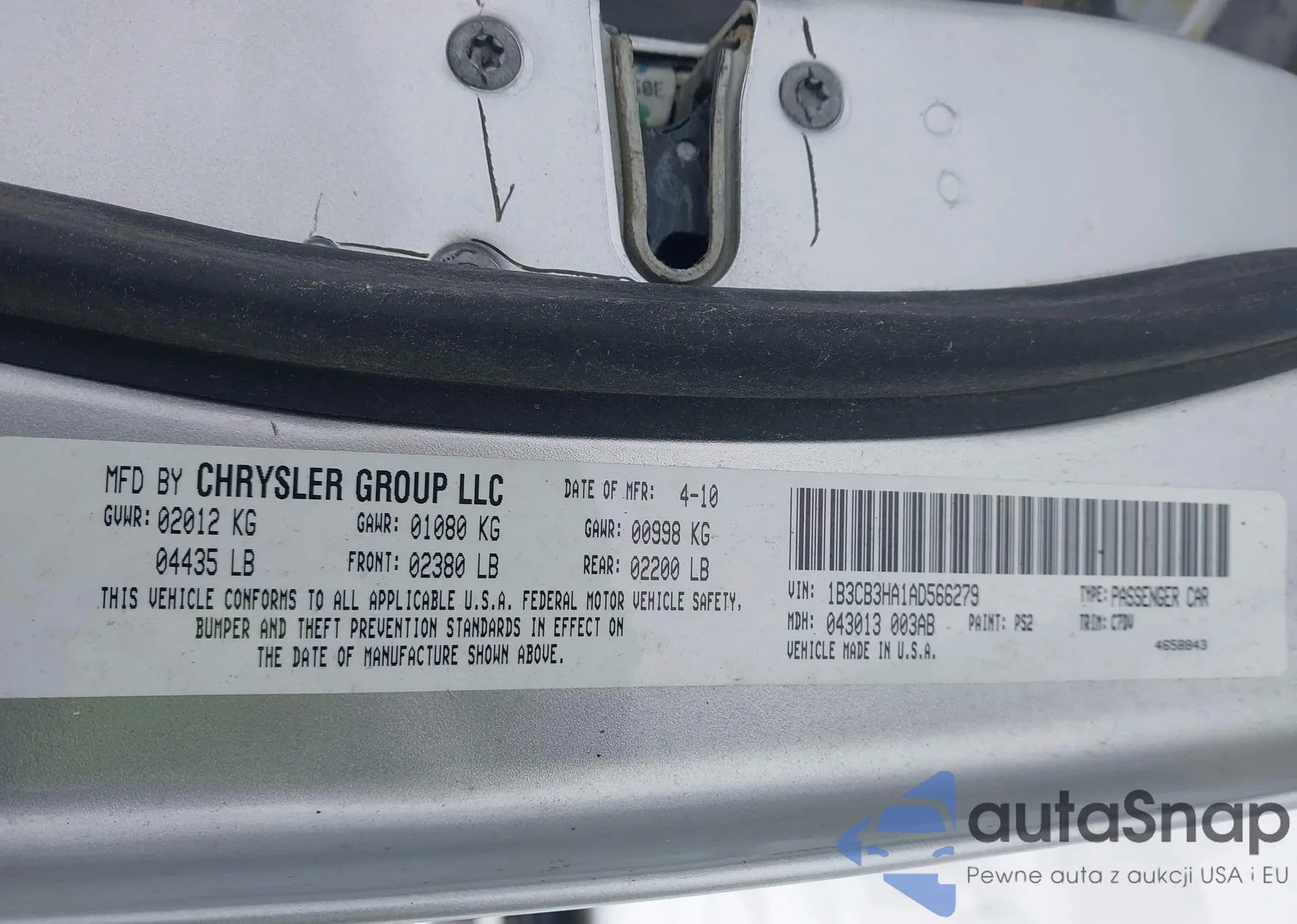 VIN: 1B3CB3HA1AD566279