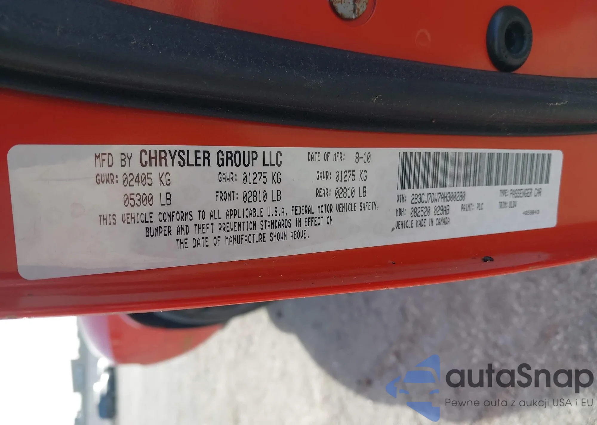 • VIN: 2B3CJ7DW7AH300280
