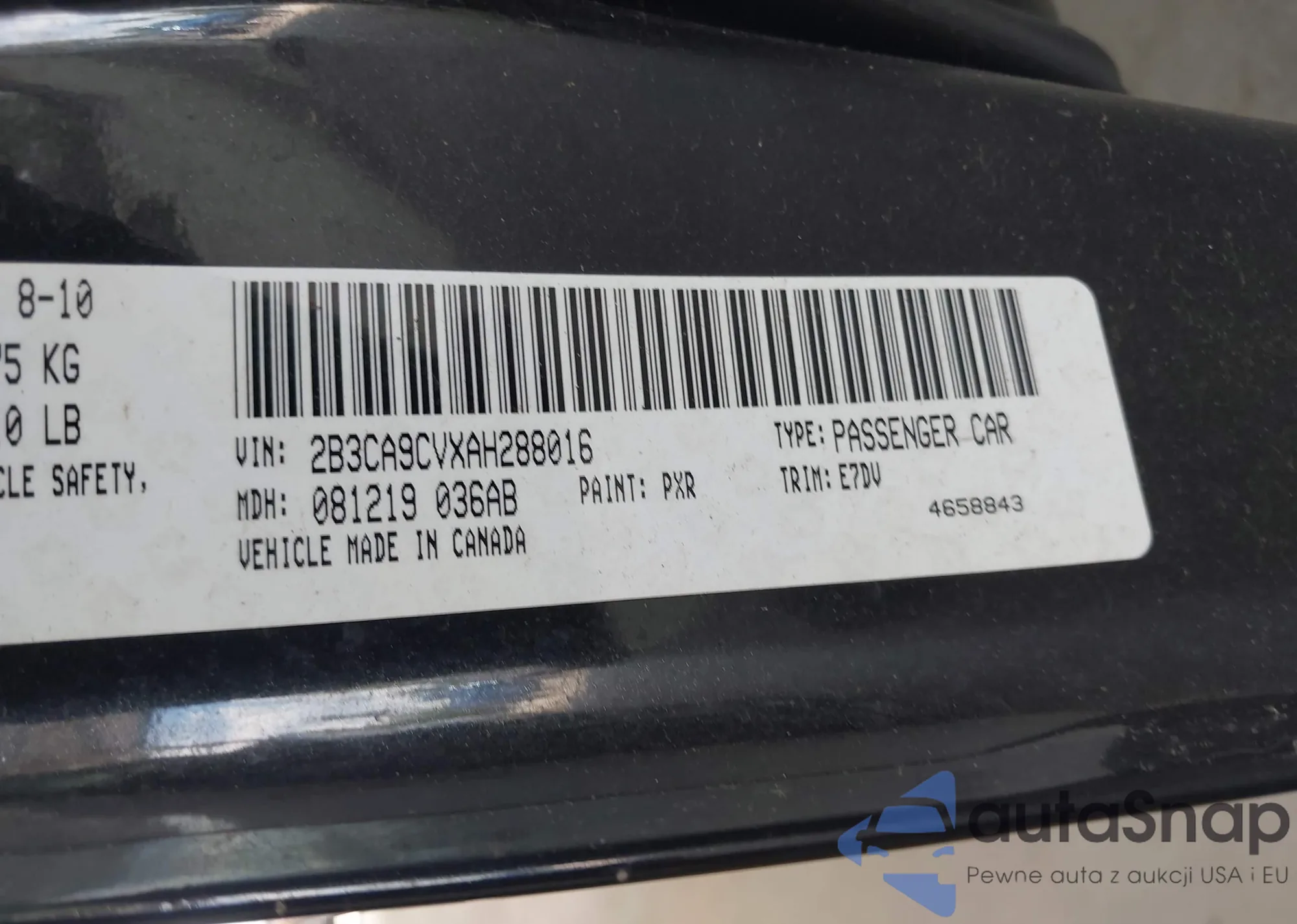 VIN: 2B3CA9CVXAH288016