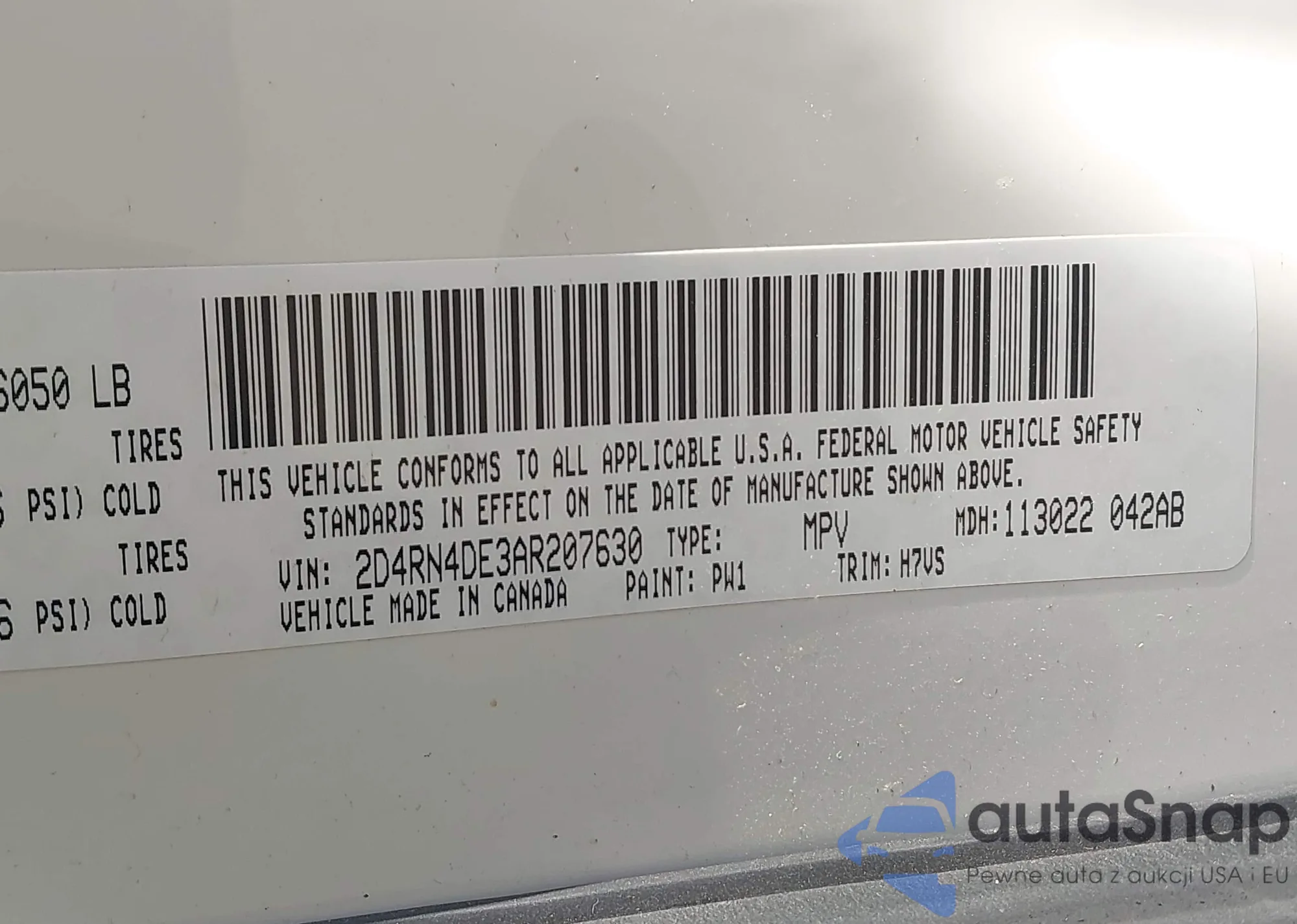 The car Dodge Caravan 2010 (VIN 2D4RN4DE3AR207630) has not been auctioned before. The documents are clean, and the mileage matches or is below the market average. Sold by an insurance company – we recommend purchase. Delivery to the port will take approx. 6–8 weeks.