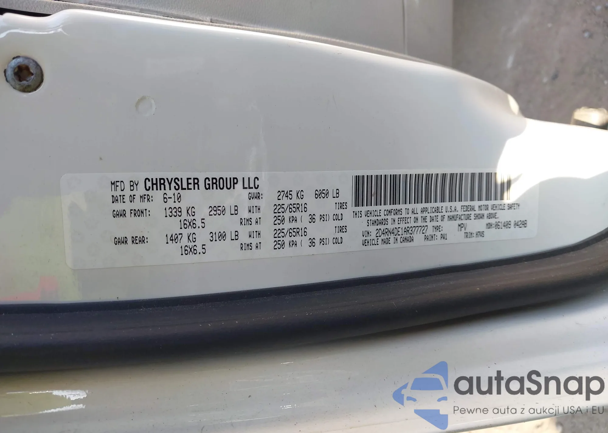 VIN: 2D4RN4DE1AR377727
