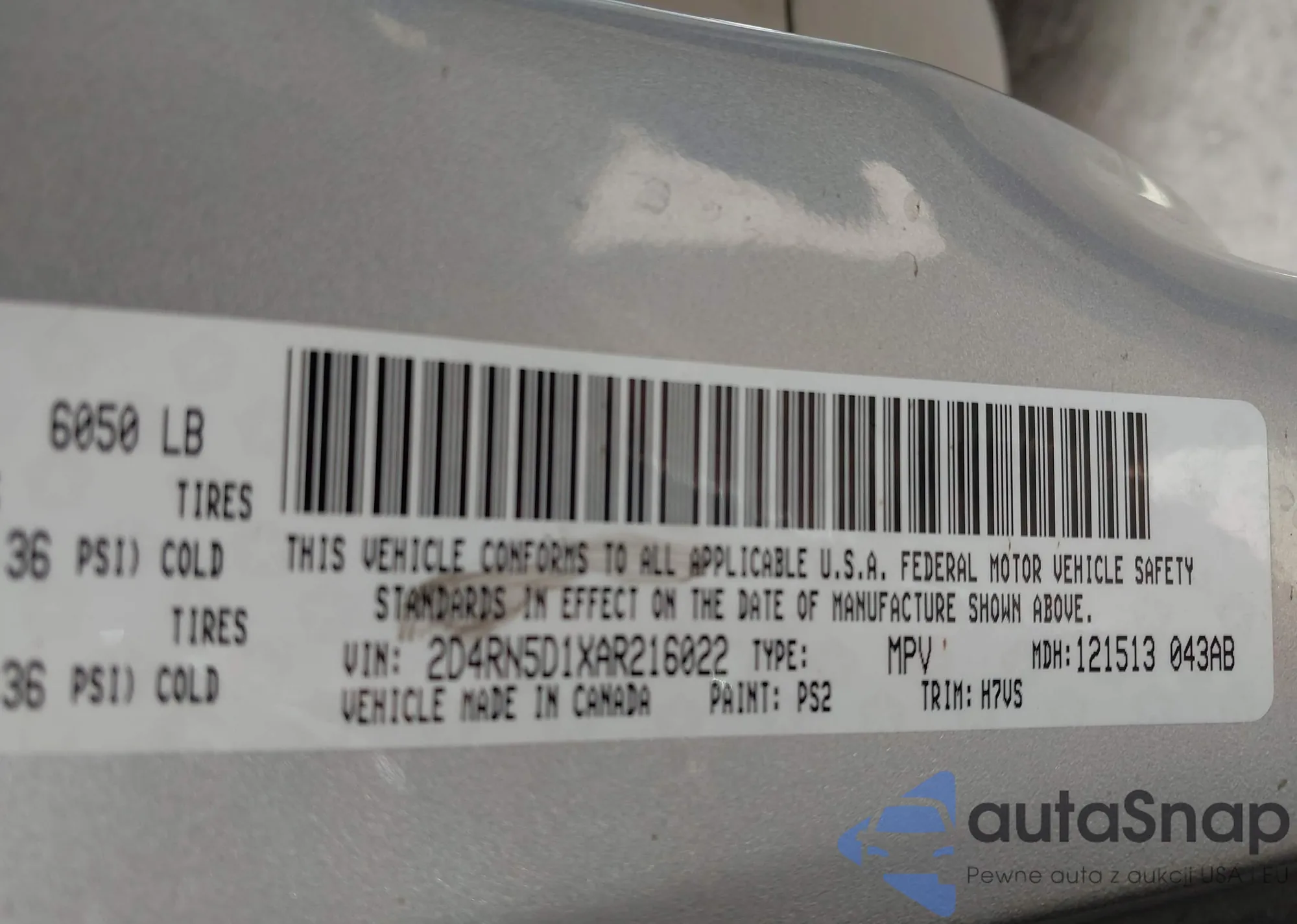 VIN: 2D4RN5D1XAR216022