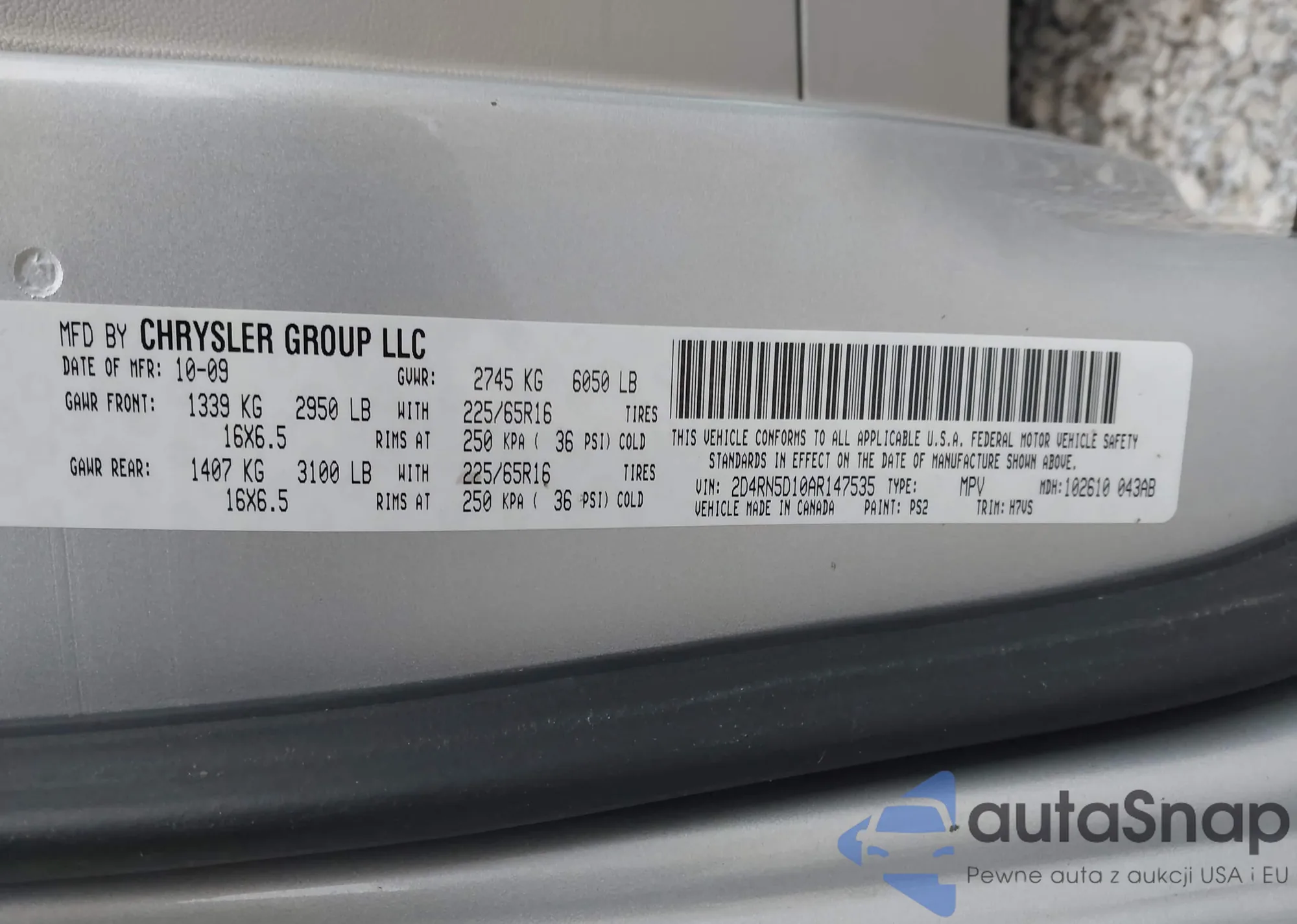 VIN: 2D4RN5D10AR147535