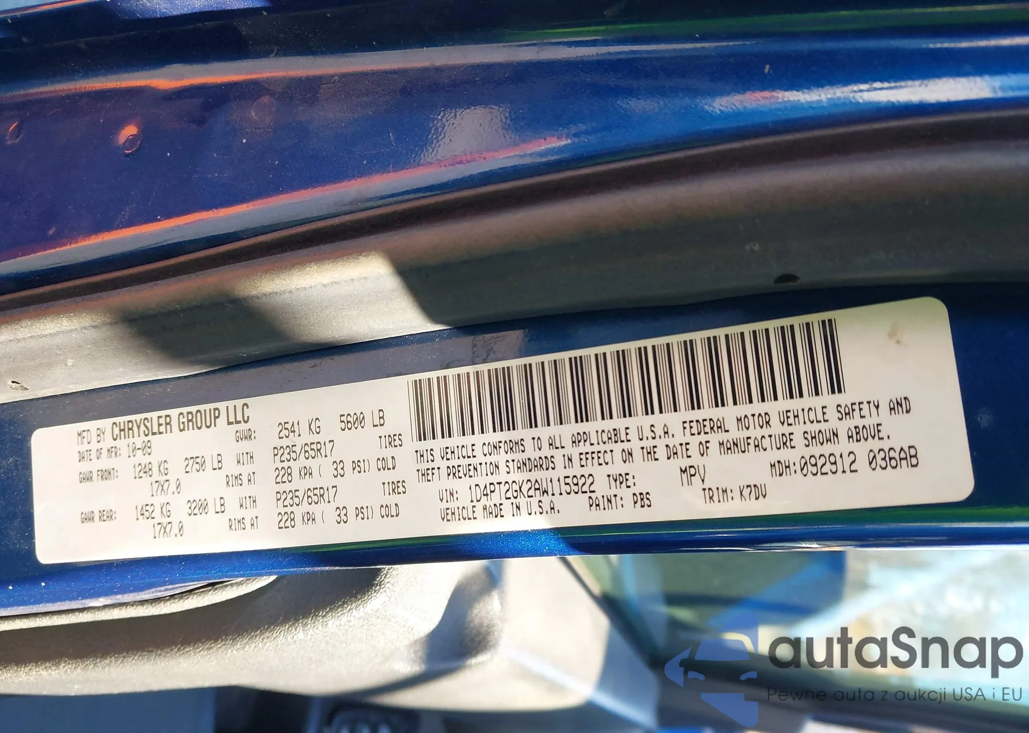• VIN: 1D4PT2GK2AW115922