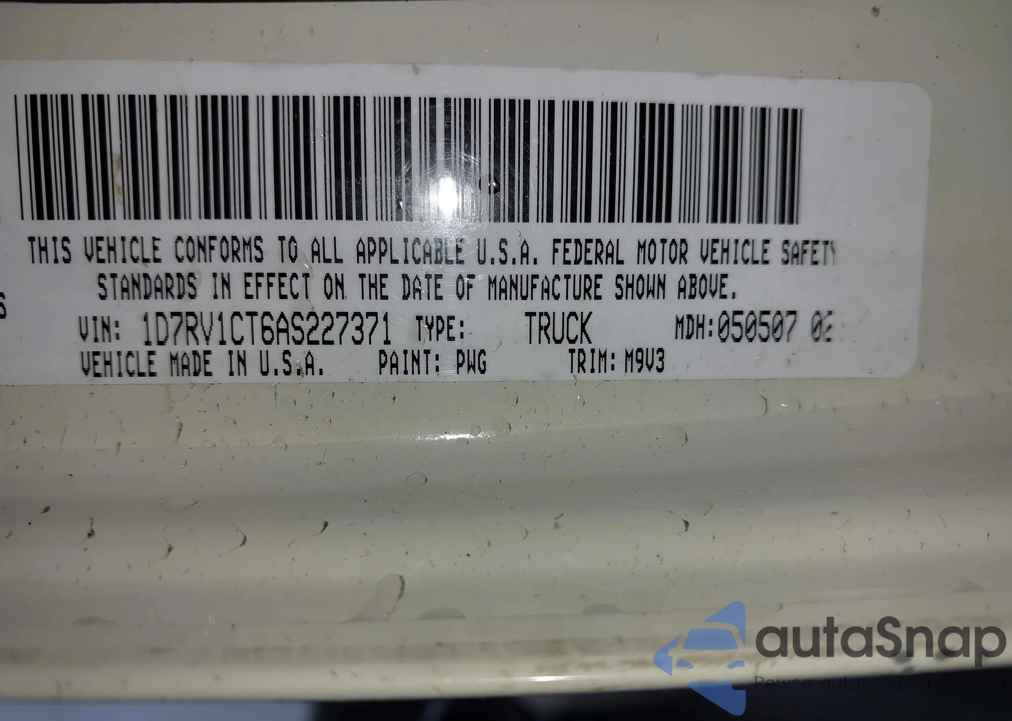 The car Dodge RAM 2010 (VIN 1D7RV1CT6AS227371) has not been auctioned before. The documents are clean, and the mileage matches or is below the market average. Sold by an insurance company – we recommend purchase. Delivery to the port will take approx. 6–8 weeks.