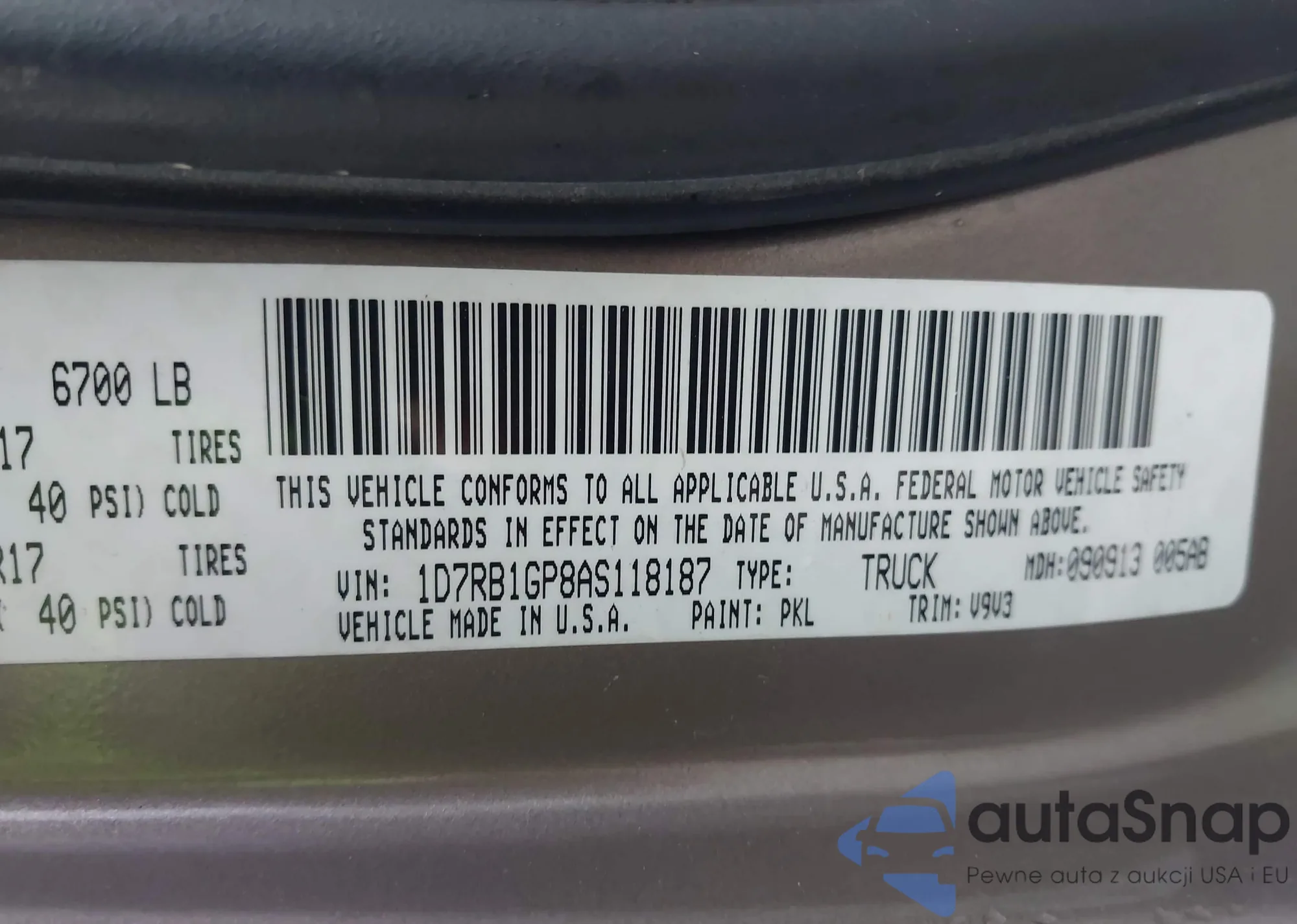 The car Dodge RAM 2010 (VIN 1D7RB1GP8AS118187) has not been auctioned before. The documents are clean, and the mileage matches or is below the market average. Sold by an insurance company – we recommend purchase. Delivery to the port will take approx. 6–8 weeks.