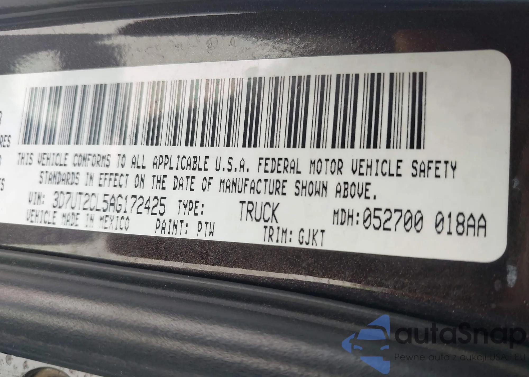 VIN: 3D7UT2CL5AG172425