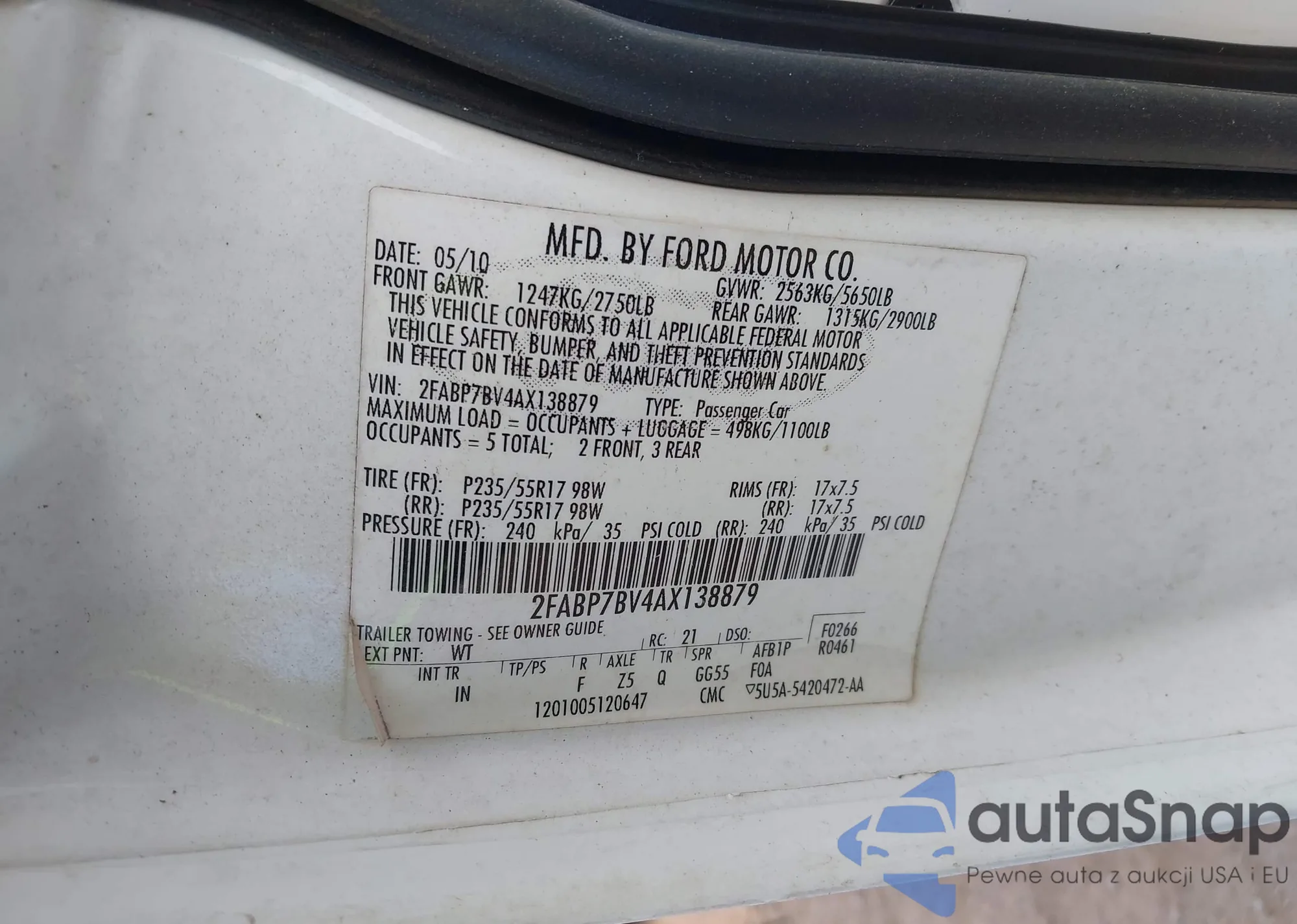 VIN: 2FABP7BV4AX138879