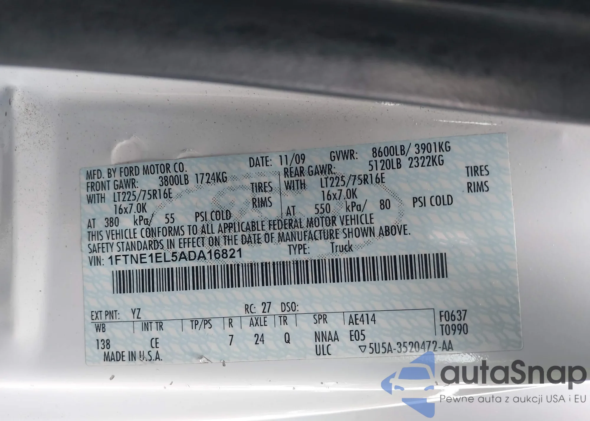 VIN: 1FTNE1EL5ADA16821