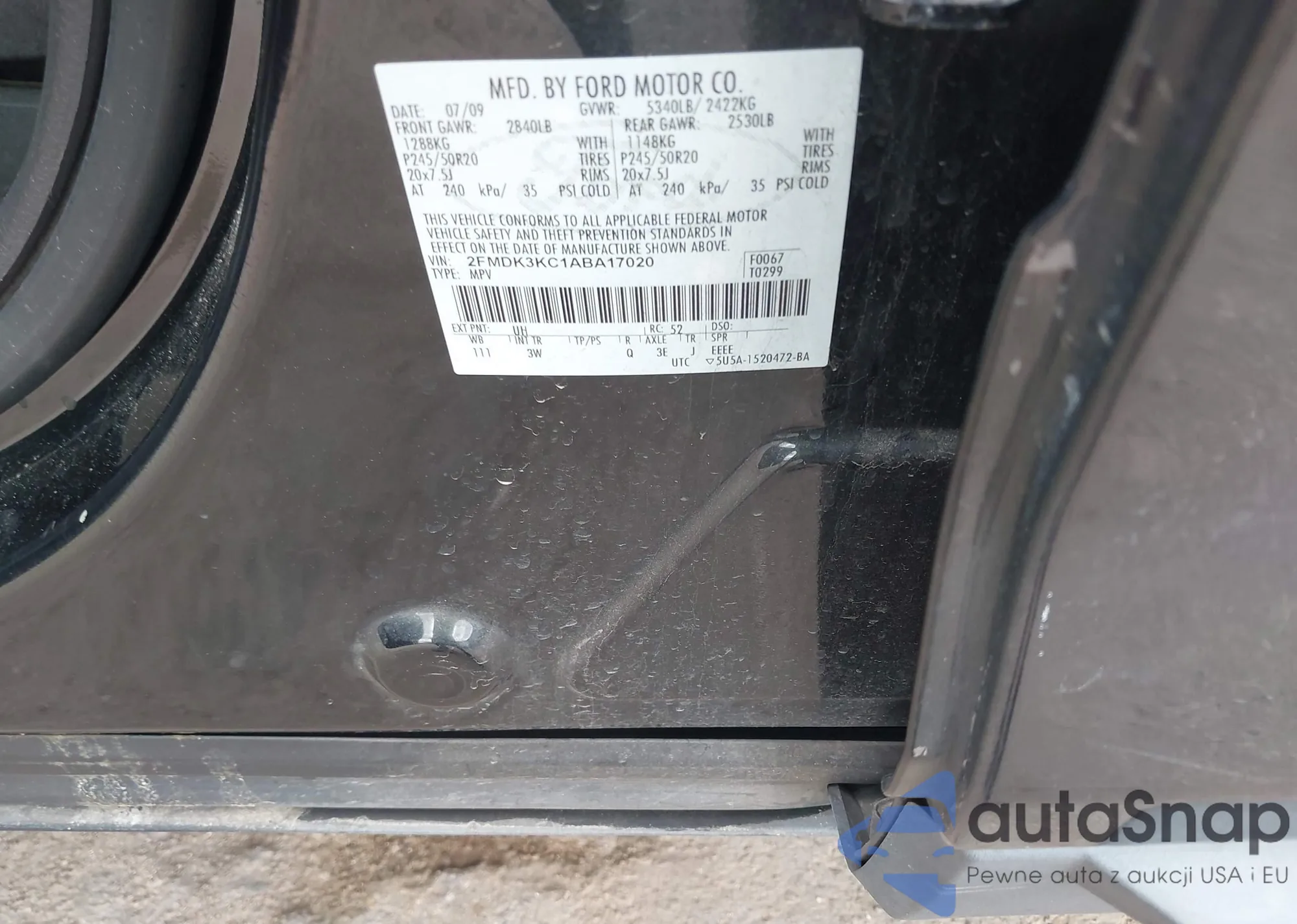 The car Ford Edge 2010 (VIN 2FMDK3KC1ABA17020) has not been auctioned before. The documents are clean, and the mileage matches or is below the market average. Sold by an insurance company – we recommend purchase. Delivery to the port will take approx. 6–8 weeks.