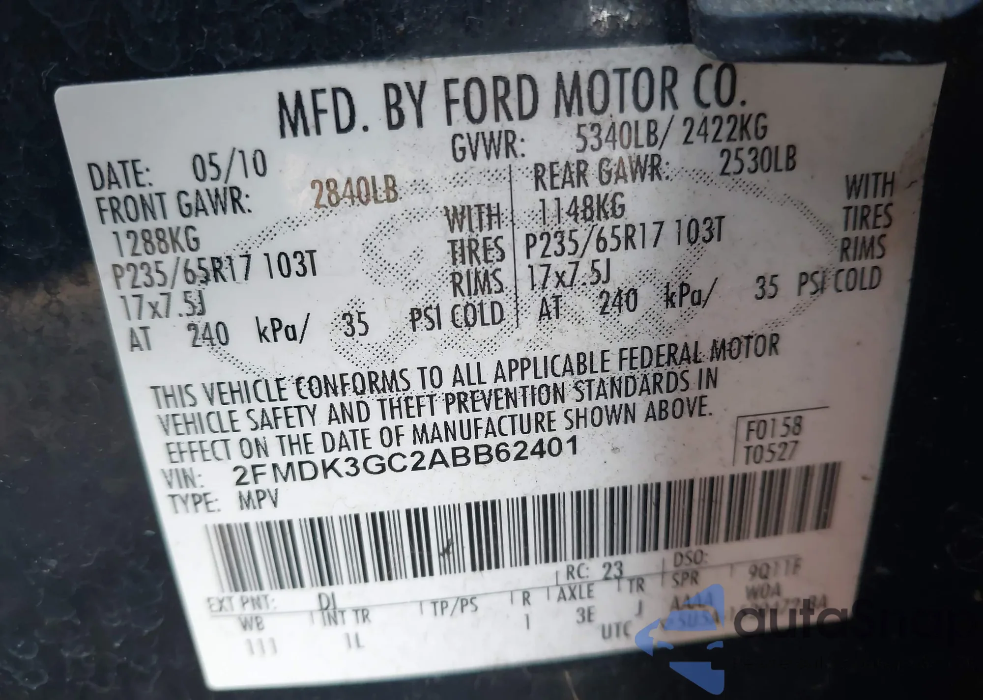 VIN: 2FMDK3GC2ABB62401