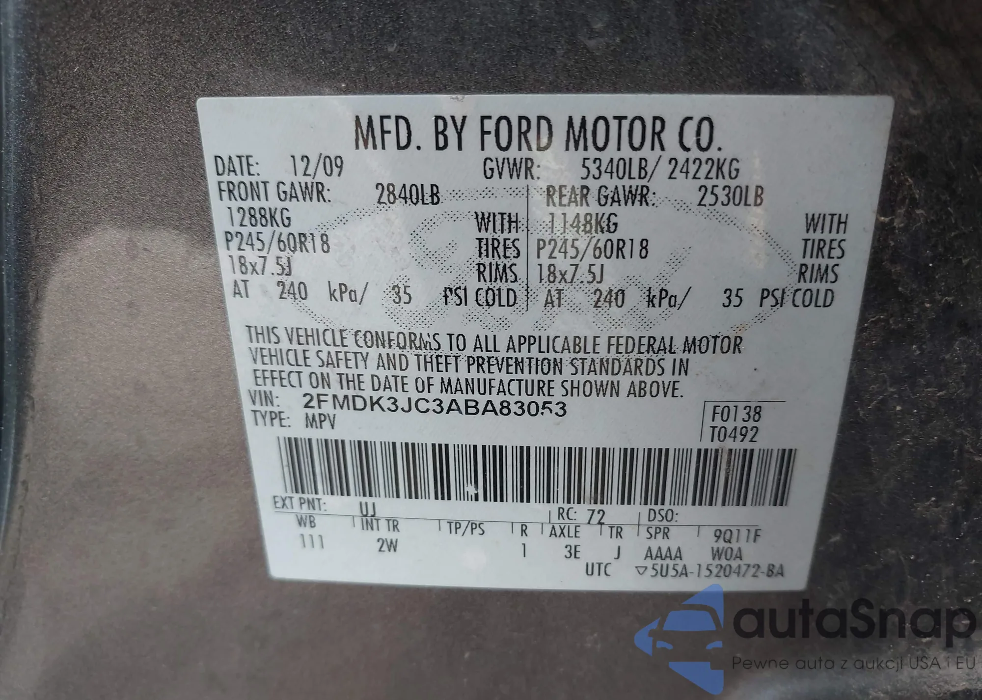 • VIN: 2FMDK3JC3ABA83053