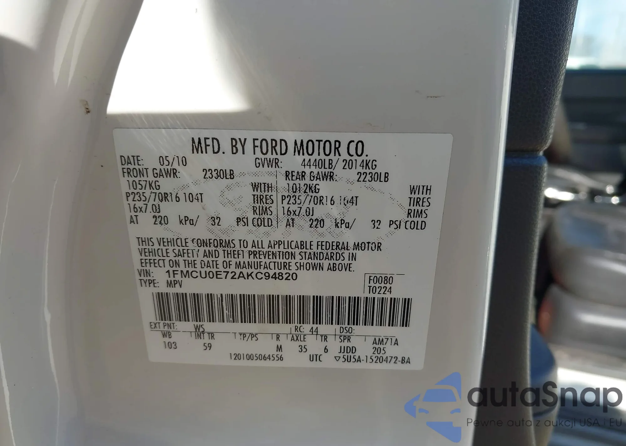 VIN: 1FMCU0E72AKC94820